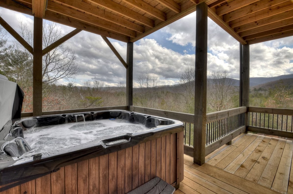 The Hickory Grove Haven brings a fresh new vibe to your next Blue Ridge mountain getaway! With all seven of our North Ridge Escapes properties, we strive to raise your expectations for your vacation rental experience! Every inch of this newly built house was intentionally designed to provide YOU with rest and rejuvenation of your mind, body, and soul. Large windows provide a picturesque wooded scenery and abundant natural light. Head outside to enjoy a soak in the spa, a movie by the firepl
