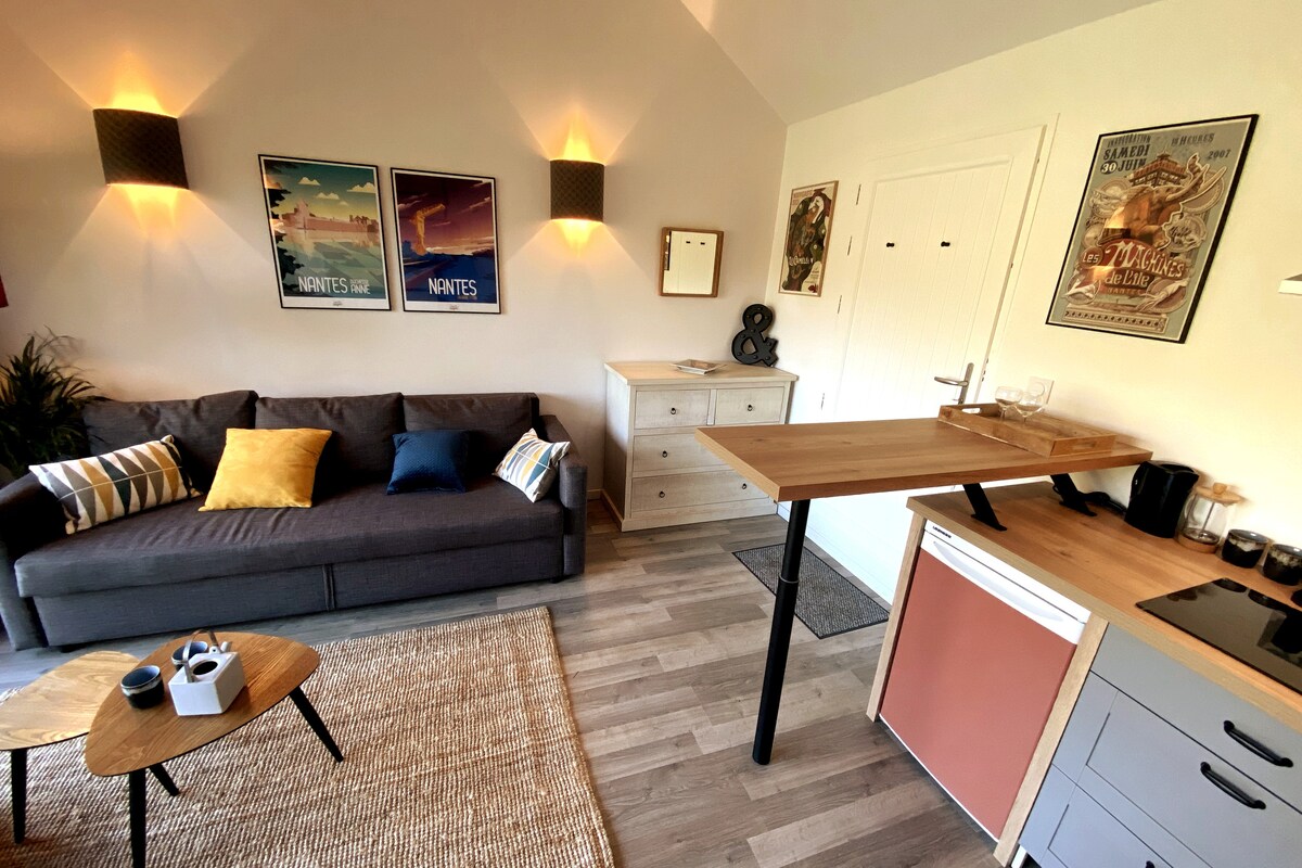 ¡Venga a conocer nuestra “Woody”! Para una estadía corta o prolongada, es cómodo, acogedor y tiene un jardín privado, tranquilo de su callejón sin salida. Debido a que un buen sueño se acompaña de una buena ropa de cama, la Woody está equipada con un sofá cama de calidad (Emma®). Puede alojar a una gran variedad de huéspedes, desde amantes de la naturaleza, con sus paseos a orillas del Erdre a 200 m, hasta urbanitas, con el transporte público cercano (tranvía 1, tren tranvía, autobús 86 y autobús E5).