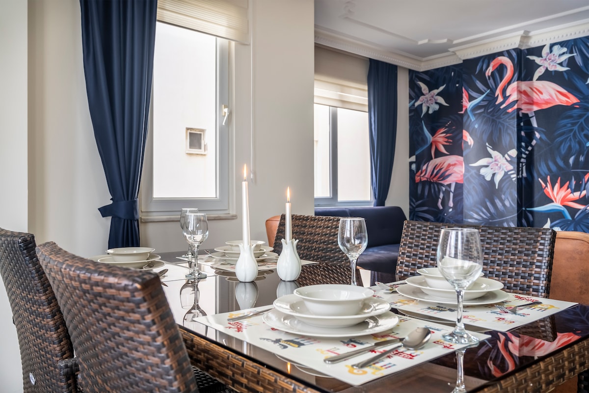 Bu şık yerde tüm ailenizle hoşça vakit geçirin.Gelin bu özel, sessiz ve sade evimizde kalın, şehir merkezinin kalbinde yer almaktadır. Bu geniş ev, bir grup seyahat arkadaşı veya huzurlu bir konaklama arayan bir aile için mükemmeldir.Alanya'nın kalbinde yer alan bu dairede her yere yürüyerek ulaşmanın keyfini çıkarın.Evimiz birçok restorana, alışverişe merkezi bir konumdadır.Olanaklar arasında Yüksek Hızlı Wi-Fi, Tam donanımlı mutfak- Çamaşır makinesi bulunmaktadır.
