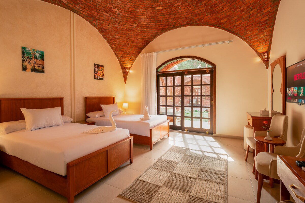 A comfortable and elegant double room, designed for couples or small families. Enjoy a relaxing stay in Luxor close to the city's famous temples and attractions.