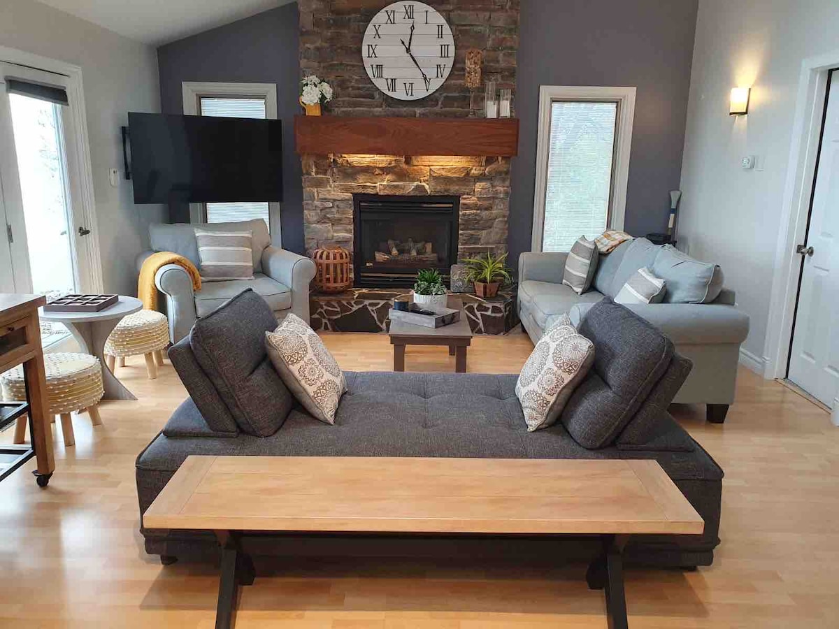 Situado en el corazón de la región vinícola, en una playa de arena del lago Erie con excelentes vistas, actividades para familias, restaurantes y restaurantes. Te encantarán los techos altos, las vistas panorámicas, las camas cómodas, escuchar las olas en la playa, la sensación de los pies en la arena con una bebida fresca en la mano. Este refugio es ideal para parejas, viajeros de negocios y familias (con hijos). Hay una acogedora chimenea de gas con TV 4K, Netflix, wifi y cocina completa. ¡Tu refugio te espera!