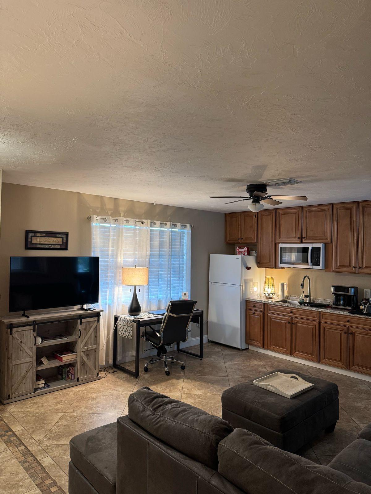 Beautiful newly built spacious studio in downtown Bonita Springs, 7 miles from the world famous Barefoot beach, and only 100 steps away from the popular Riverside park where many events and festivals are held. This spacious studio is modern with a very tall ceiling with exposed wood beams, well lit with giant slider doors, with a full sized kitchen and full patio area. Perfect for a couple on a get-away or even a single person just traveling for leisure or work. Clean at all times.