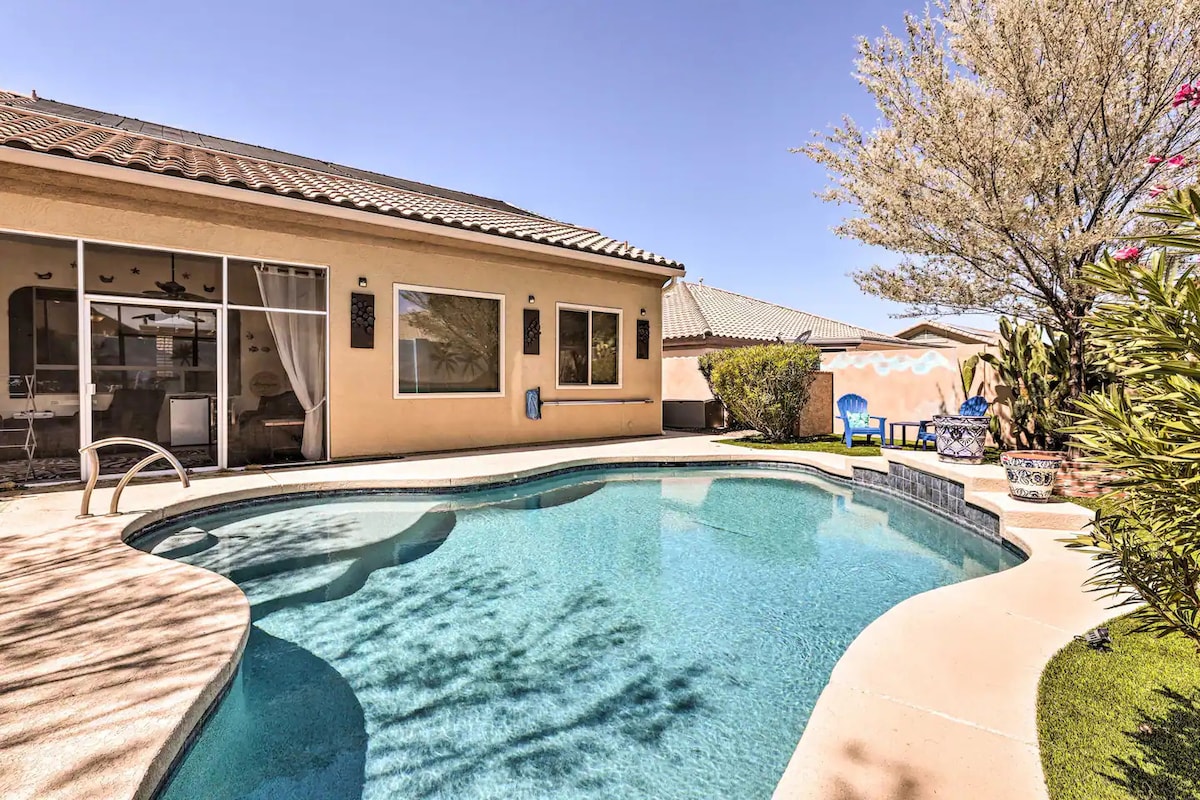 Cuando el sol de Arizona esté llamando, dirígete a esta hermosa casa de Goodyear ubicada en la comunidad de Estrella. Este alquiler vacacional de 4 dormitorios y 2,5 baños cuenta con una cocina completa, una mesa de billar, un patio y una piscina privada y jacuzzi, por lo que tendrás todo lo que necesitas para un viaje lleno de diversión. Durante tu estancia, explora el Parque Regional Estrella Mountain, reserva un paseo en el campo de golf Tres Ríos o visita el centro de Phoenix. A medida que cae el sol, camina hasta la Torre Estrella Star para disfrutar de unas vistas impresionantes.