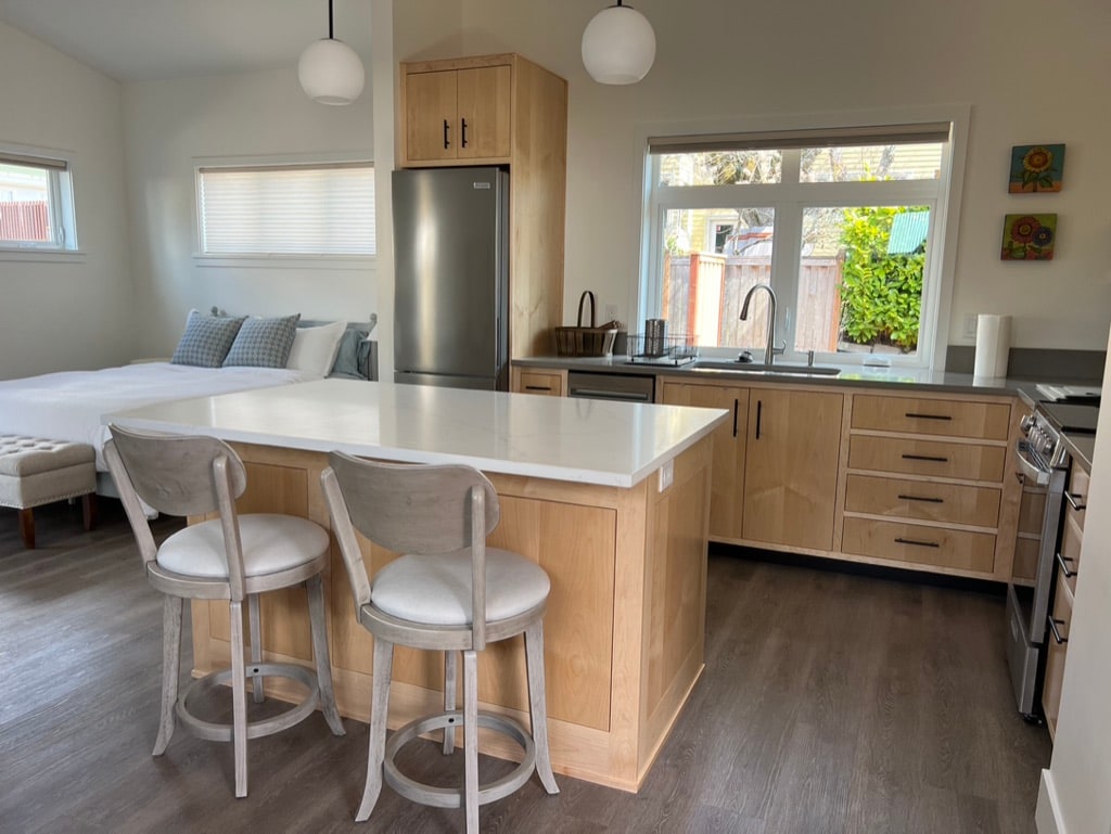 El recién renovado HoneyComb HideAway (HCHA) ofrece a los huéspedes una moderna estancia en una casa de campo en Eugene. Este santuario para amantes de las plantas cuenta con una cocina completa, baño privado completo y magníficas vistas a la colina de la propiedad de 12 acres de Lorane Highway, GoatsBeard HomeStead. Ya sea que estés aquí para una escapada de cata de vinos, una aventura al aire libre o un evento de la Universidad de Oregón, o una boda, el HoneyComb HideAway se asegurará de satisfacer tus necesidades.