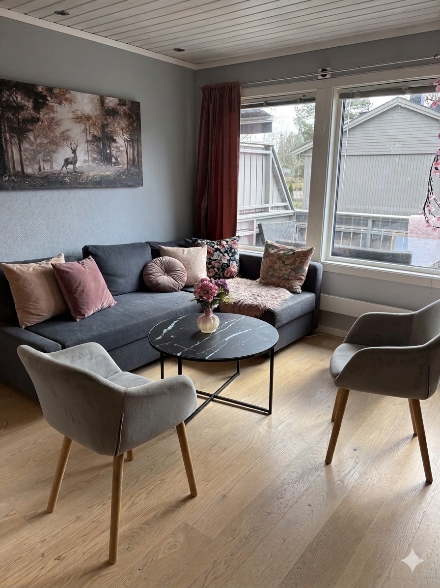El apartamento se siente como un hotell boutique y es más bajo en los medios de la naturaleza noruega. Decorado delicado y moderno con la sensación de los pequeños extras que proporcionan bienestar y placer. Las buenas camas te dan una buena noche de sueño. A poca distancia a pie de cafeterías, restaurantes, tiendas de comestibles, farmacias, licorería, gimnasio, campo de golf, playas y un parque de patinaje con gimnasio al aire libre.