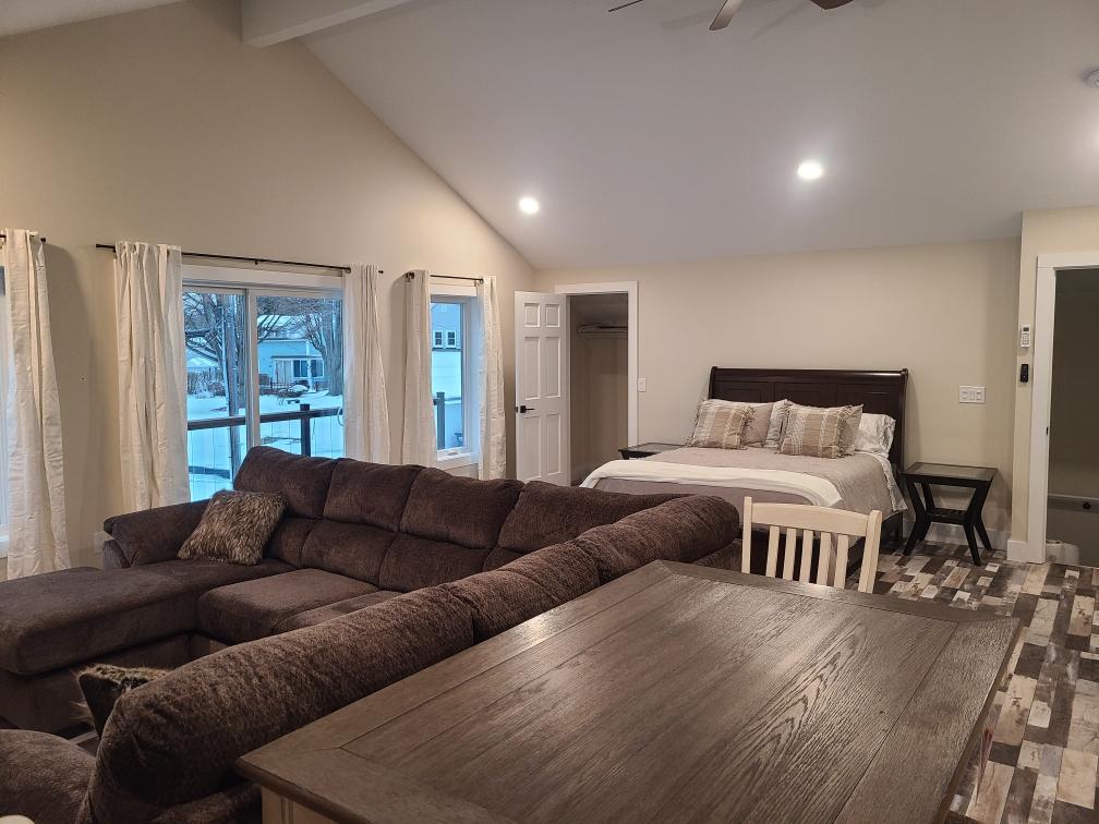 Muy superior a las habitaciones de hotel de la zona, este apartamento de 1 dormitorio de ALTA GAMA está equipado con WIFI GRATIS, televisores ROKU de 50" y 32" (usa tus aplicaciones favoritas), televisión por cable a través de la aplicación Spectrum, reproductor de DVD/CD/Blue Ray, bidé, lavadora y secadora combinadas, bañera de hidromasaje, cocina equipada. Dormitorio con la mejor cama tamaño king, armario/ropero, cómoda, mesitas de noche, baño y sala de estar con sofá cama tamaño queen fácil de usar. Gas, electricidad, agua, remoción de nieve, estacionamiento, pisos de madera dura real, cocina/baño de azulejos. ¡ENORMES DESCUENTOS PARA ESTANCIAS MÁS LARGAS!