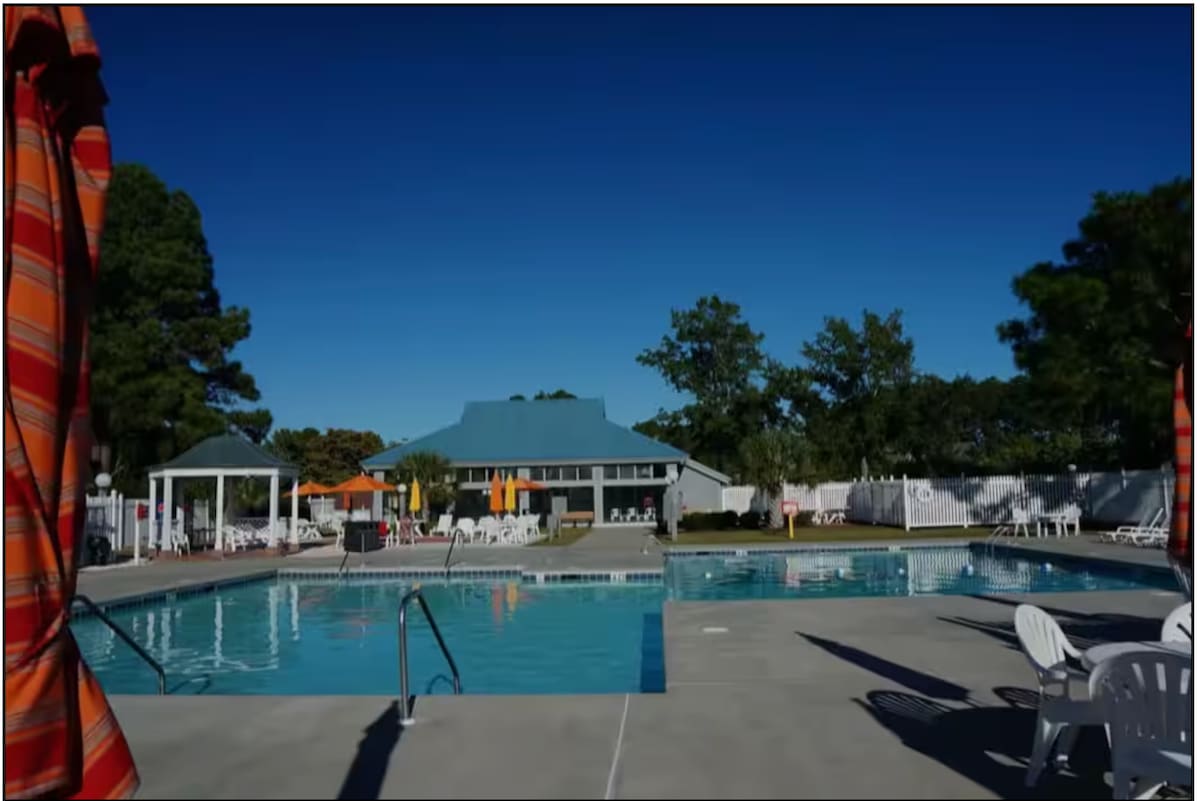 The Harbourside Resort Oasis ofrece todo lo que necesita para una escapada tranquila. Equipado con una cama híbrida tamaño queen, un sofá que se despliega para convertirse en una cama completa y una cocina pequeña con freidora de aire y cafetera Keurig. Disfrute de un café en el acogedor porche cerrado con mosquitero. Los servicios del centro recreativo incluyen un gimnasio completo, piscina cubierta/al aire libre, sauna, jacuzzi, minigolf, canchas de tenis, pickleball y baloncesto, además de actividades programadas. Pase el día en el encantador centro de New Bern y asegúrese de aprovechar al máximo su tiempo libre con total tranquilidad.