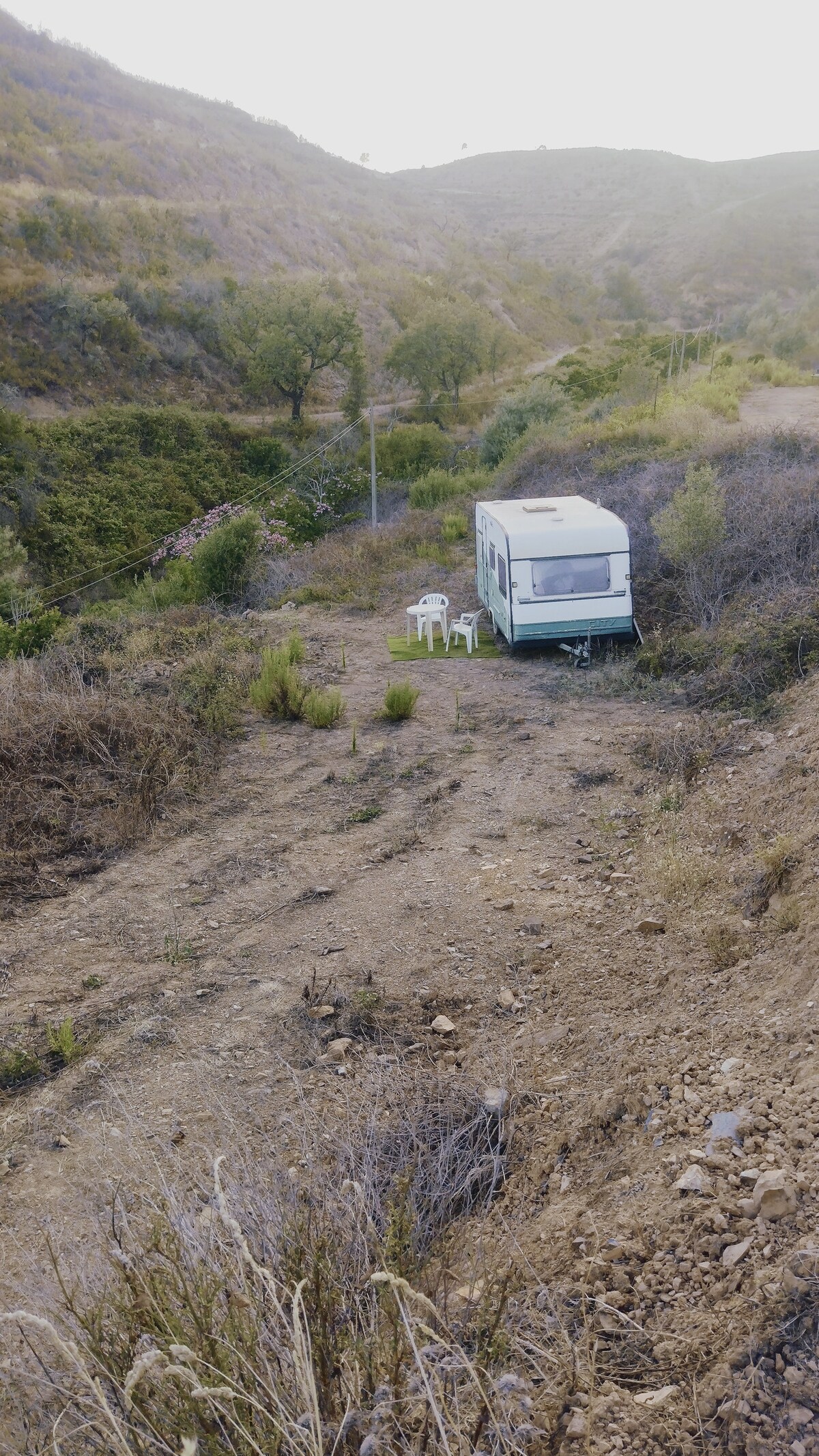 Rest in a natural and peacefull enviroment in a Cozy caravan for your own. Nights are confortable to sleep even in the hot days of Algarve. Cosy caravan with a double mattress and a resting area on terrace with views in a land of 2 ha. to guest you in a way of living in contact with nature. From the kitchen/toilet you need to walk 100 meters and a stair to arrive to the caravan. Thanks to this it offers a private area apart from the bungalow tents. You have a private fridge next to the caravan