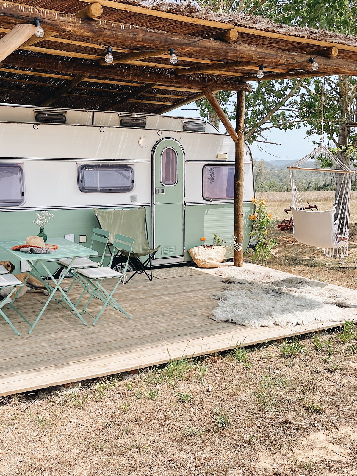 El romántico Glaravan se encuentra en The Farm, Aljezur. En la finca encontrarás 360 árboles frutales diferentes y un viñedo, desde el que se hace vino natural ecológico para el amante del vino. Es un lugar exclusivo y céntrico ubicado a lo largo de la costa rústica del Algarve y con vistas a las hermosas montañas de Monchique.