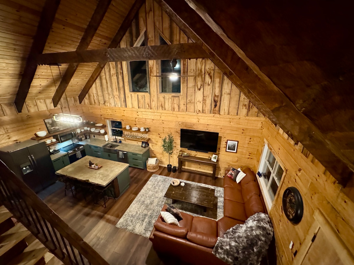 Escápate a una de las joyas ocultas de Front Royal, «The Honeymoon Cabin» ofrece a las parejas y más la oportunidad de retirarse y sentarse entre las estrellas con vistas al «Lago de las Nubes» de la comunidad. Ya sea una escapada romántica, una aventura en solitario o una reunión de amigos, encontrarás relajación entre las estrellas sobre ciudades distantes o el contorno de las montañas a través del valle de Shenandoah. *Decoración romántica que incluye flores frescas, globos, champán, chocolate e iluminación ambiental disponible bajo petición por 320 dólares.