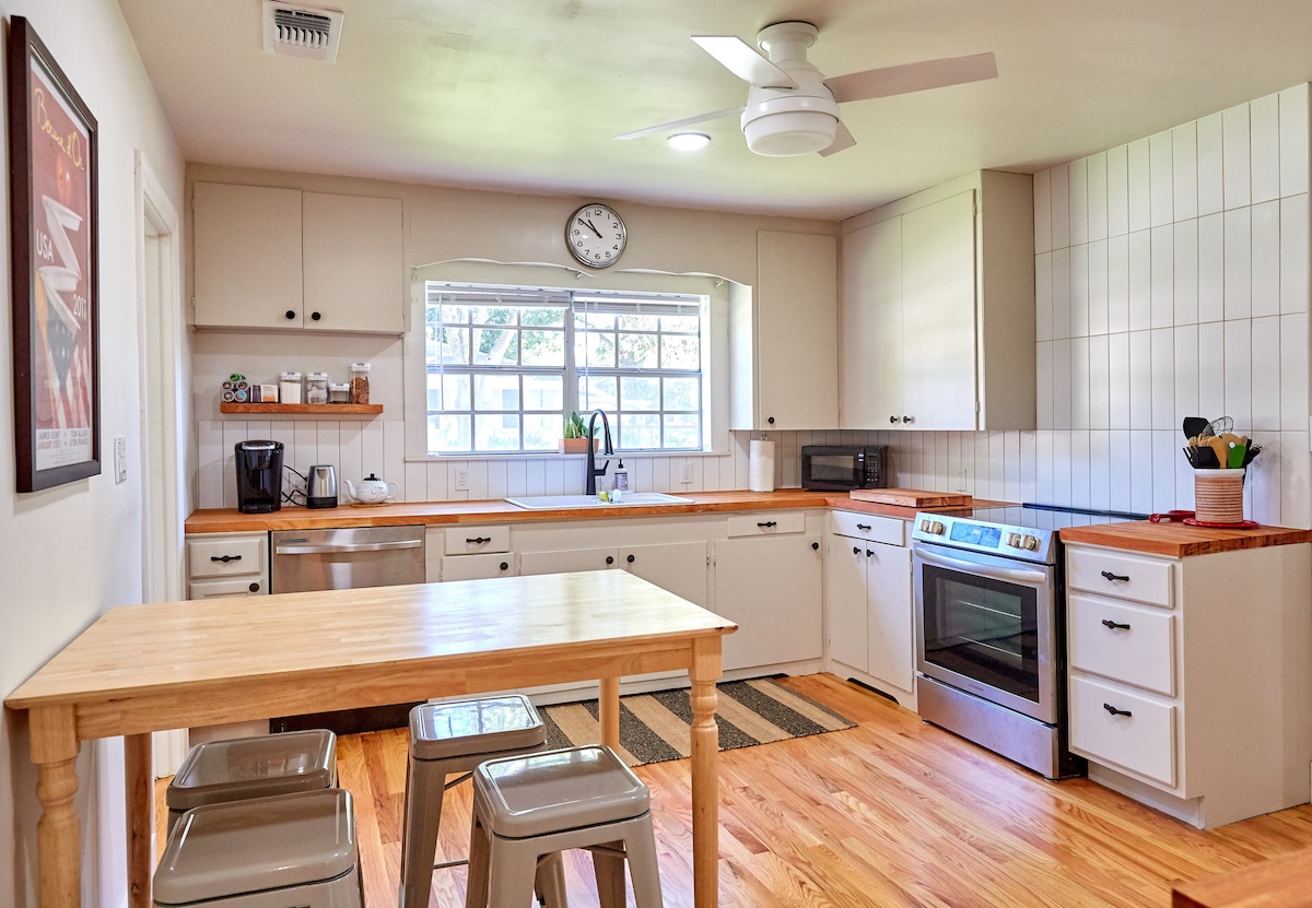 Escápate al corazón de Texas y experimenta el encanto de Smithville en nuestra acogedora casa rural con capacidad para 4 personas. Ubicada en un lote doble, esta propiedad vallada es perfecta para los huéspedes que viajan con sus amigos peludos. Con una cama queen y una cama completa, nuestra casa de campo es ideal para parejas, familias o un grupo de amigos que buscan una escapada relajante. También tenemos una casita de 1 dormitorio en la propiedad que está completamente vallada y es privada. Indícanos si te interesan ambas propiedades.