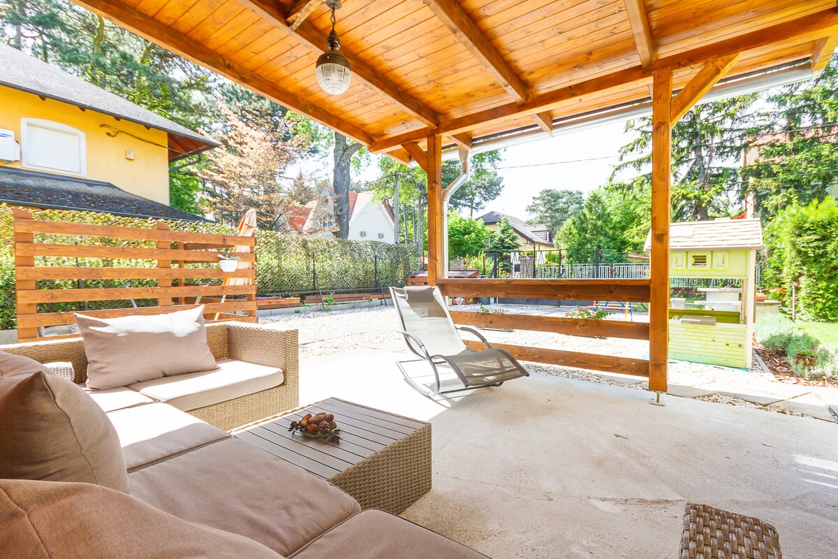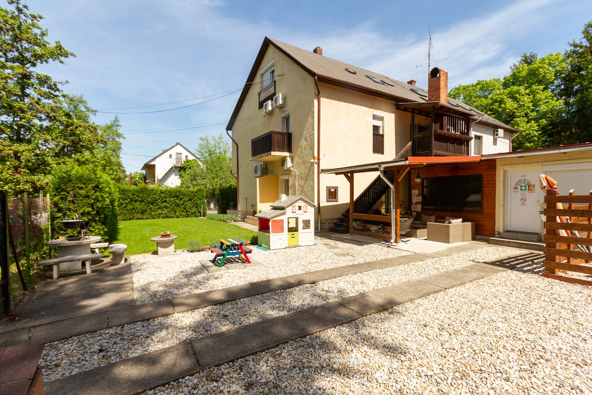 La casa de huéspedes Patikakert es una casa pasiva, ubicada en medio de una plantación especial, debajo de las colinas de Buda, a 12 km de Budapest. El interior está muy bien diseñado con elementos individuales y artísticos. La casa de huéspedes está rodeada por un hermoso jardín de relajación, un estanque de natación bio y espacios diseñados para barbacoas, todos disponibles para nuestros huéspedes. Los dormitorios están equipados con una cama doble. Hay una cama supletoria y una cuna disponibles bajo petición.