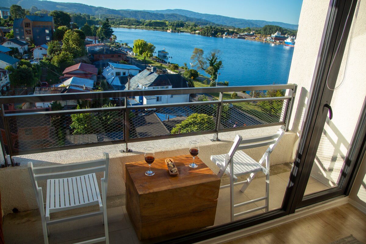Espectacular apartamento, con la mejor vista de Valdivia. Donde mires verás el hermoso Río Calle Calle. Es un alojamiento nuevo, con 2 habitaciones y 1 sala de estar, amplia sala y comedor y una cocina totalmente equipada. Todo está pensado para que tengas la mejor estadía y las mayores comodidades. La ubicación es inmejorable, a solo pasos de la Av Costanera donde se puede acceder a todos los puntos turísticos más relevantes de la ciudad. El alojamiento cuenta con estacionamiento exclusivo.