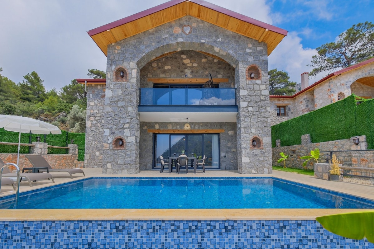 Villa en la naturaleza con piscina climatizada y calentada, Fethiye