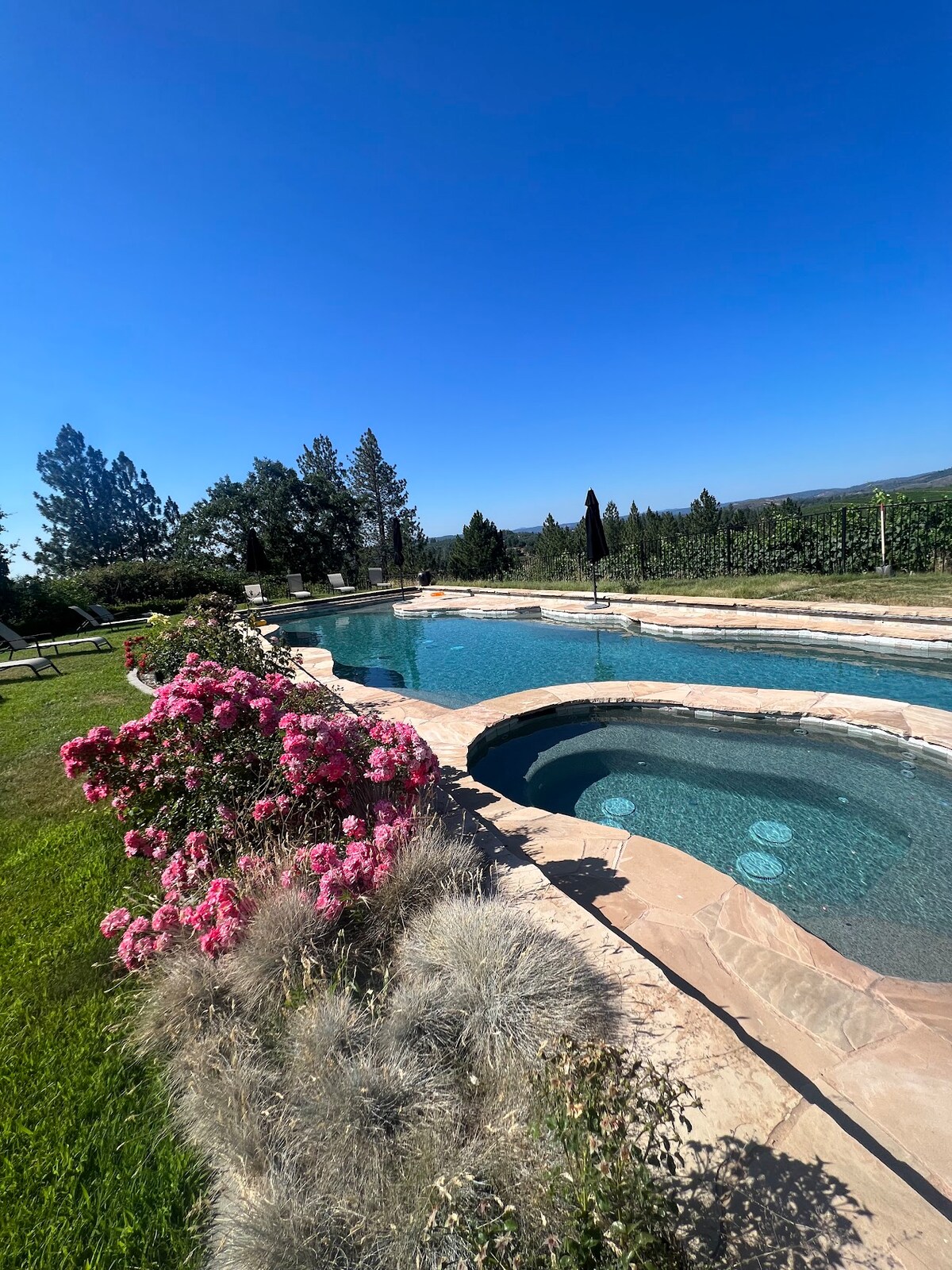 Our comfortable and quiet guest cottage is set among Ponderosa pines in the Sierra Nevada foothills, 15 minutes from more than 40 Shenandoah Valley wineries. Private tastings can be arranged. The pool is private to our guests and usually open after Memorial Day. About 50 mins to ski areas. The Cottage easily accommodates 2 couples in two bedrooms, each with private bathroom. EV charging is available - additional fee. The deck is great for outside dining or just enjoying a glass of wine.
