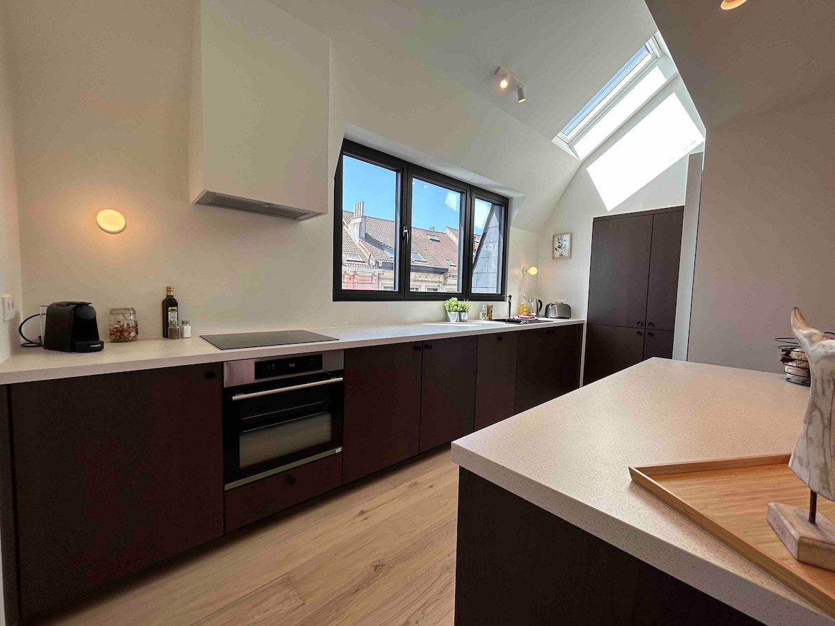 Bienvenido a nuestro elegante dúplex de Ixelles, un remanso de tranquilidad en el corazón de Bruselas. Con su diseño meticuloso y su ubicación ideal, ofrece el equilibrio perfecto entre comodidad moderna y encanto local. Disfruta de un dormitorio acogedor, una sala de estar luminosa y una cocina práctica para una estancia inolvidable. El baño y el segundo dormitorio están abajo. A pocos pasos de cafeterías, restaurantes y lugares emblemáticos, es el lugar ideal para explorar la ciudad con facilidad.