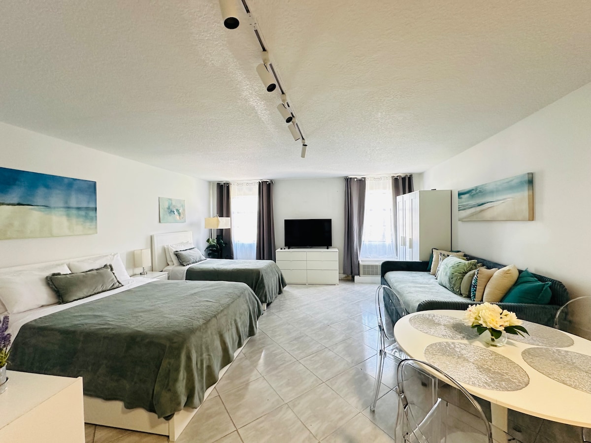 Precioso apartamento situado en el corazón de South Beach. A pocos pasos de Convention Center, playas tropicales, cafeterías, restaurantes, el centro comercial de Lincoln Road y todos los medios de transporte. ¿Te gusta estar activo? Nuestro apartamento está a poca distancia a pie del parque Flamingo, con piscina, canchas de tenis, pista de atletismo, canchas de baloncesto, barras de dominadas y, lo mejor de todo, ¡un ambiente positivo para pasar un buen rato en South Beach! Servicio de playa gratuito en cualquier estación de Esteban, 1 sombrilla y 2 sillas de 9:00 a 17:00 horas. La estación más cercana está a 15 minutos a pie.