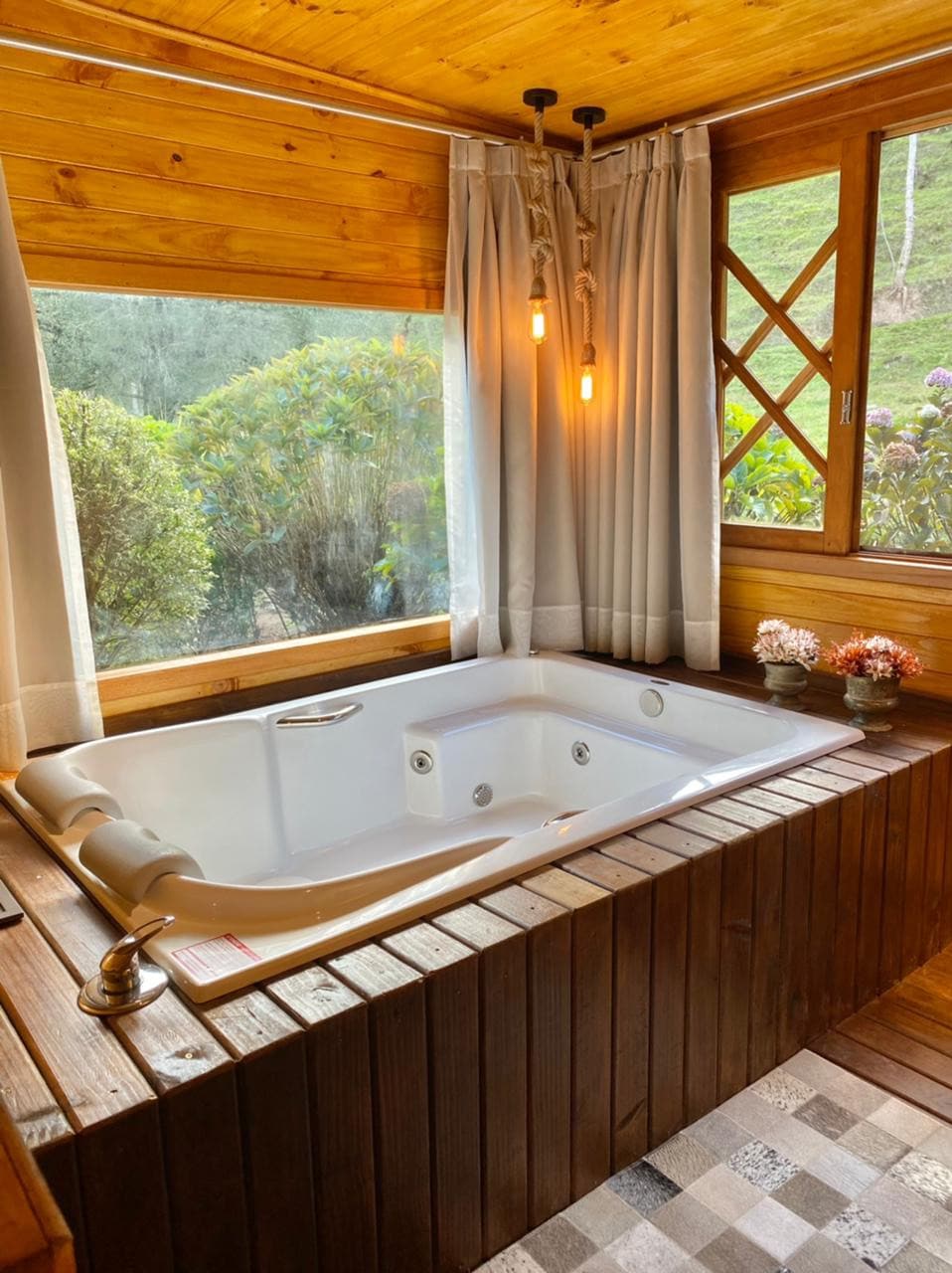 Chalé super aconchegante, com banheira de hidromassagem king size para o casal relaxar confortavelmente. Colchão ortopédico , não tem cozinha , micro-ondas e frigobar. Servimos um delicioso café da manhã personalizado com vários itens , a maioria feito por nós. Split ( quente e frio) e lareira para deixar o ambiente mais romântico e charmoso. Internet 500 megas , banho à gas , netflix ,garagem coberta. A 500mts do centro da cidade , ponto de partida para várias direções e atrações turísticas.