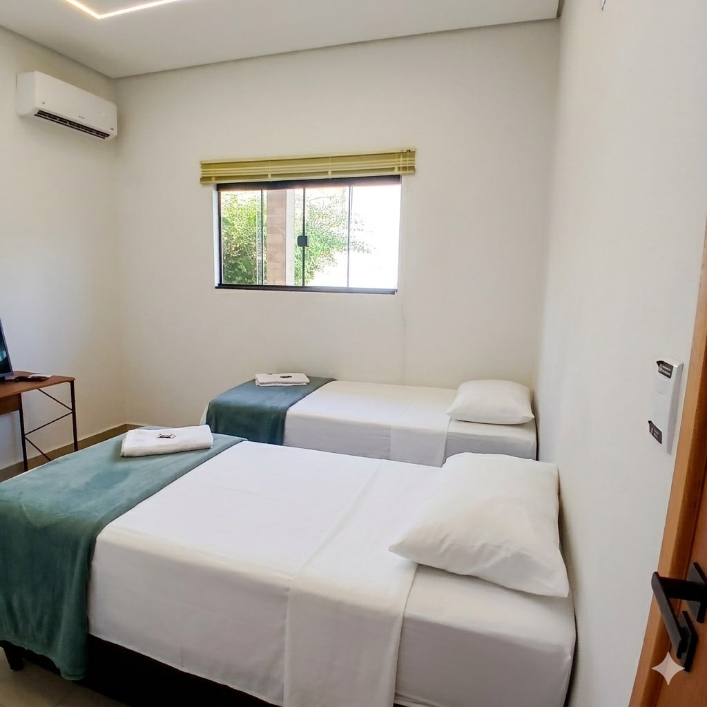 🏡 Situado em bairro nobre, acesso fácil aos principais pontos da cidade! 2 camas solteiro super confortáveis, suite com banheiro, ar-condicionado, Wi-Fi rápido, Smart TV e frigobar. Espaço recém reformado tudo novo! 🚗 Garagem exclusiva grátis! Entrada independente lateral: total privacidade e segurança. 🐾 Pet friendly (taxa extra). ⚠️ Acesso escada, balcão para refeições com itens básicos. Ambiente familiar muito acolhedor! 🛏️Venha se hospedar conosco e relaxar neste refúgio especial!