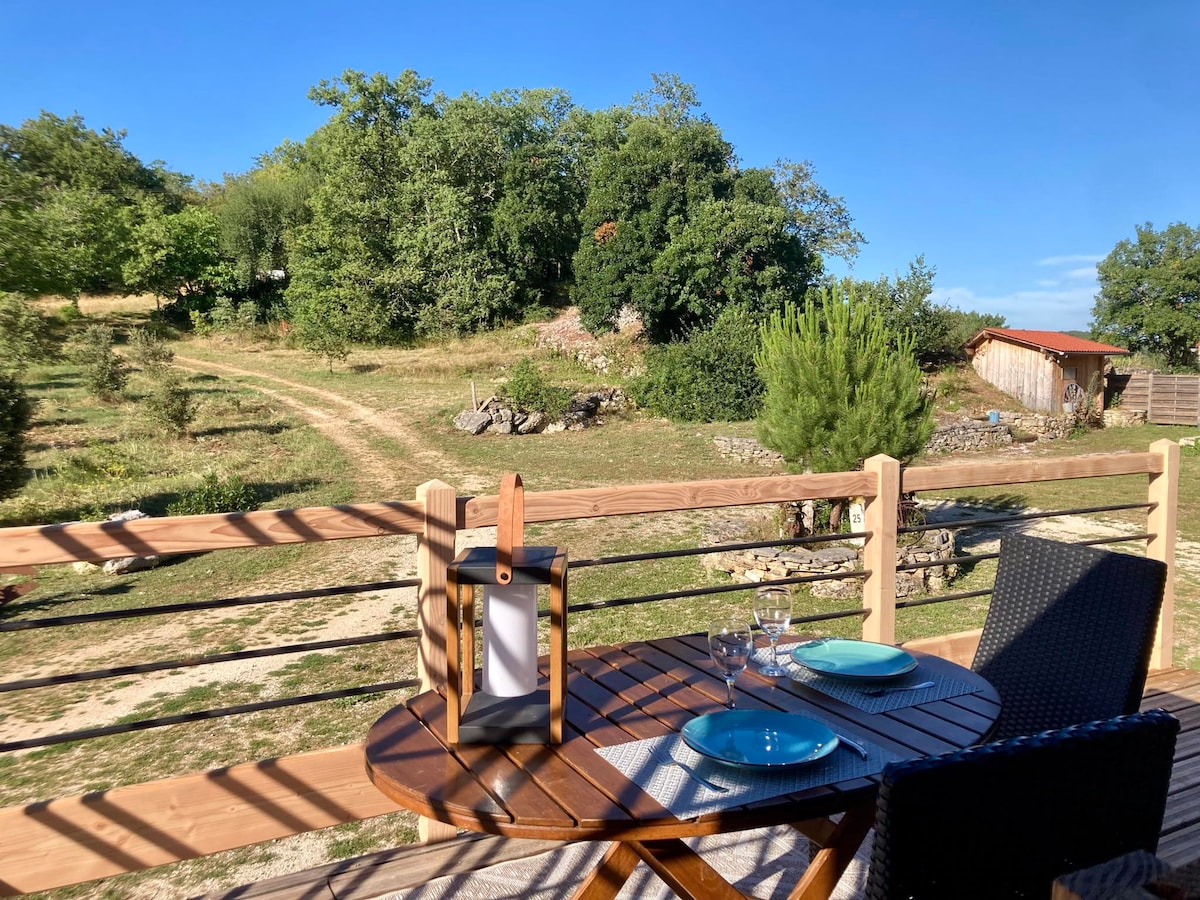 Bienvenido a L'Idylle du Causse, una casa de experiencias situada en un entorno verde. En el corazón del Parque Natural de Causses du Quercy, Geoparque Mundial de la Unesco, bajo el cielo más estrellado de Francia, nuestro nido te espera para que te escapes durante una estancia y abras un paréntesis de bienestar en tu vida diaria. A 1 h 30 min de Toulouse, 2 h 15 min de Limoges, 3 h de Burdeos y Montpellier, venga a disfrutar de una estancia en nuestra cabaña y descubra todas las bellezas del valle del Lot y del Célé