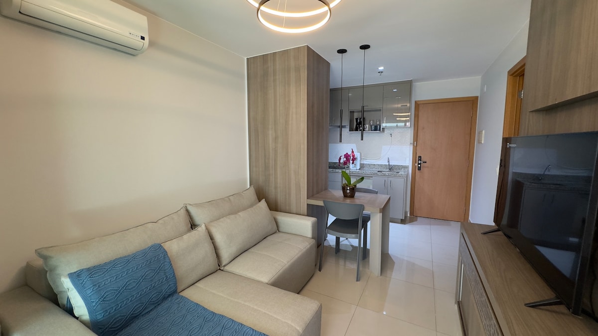 Apartamento Alto Padrão no Sahori College, 100% mobiliado, climatizado, com elevador e garagem. Ideal para lazer ou trabalho, a apenas 300m da UNIRV e Av. Brasília. Condomínio com segurança por câmeras, lavanderia coletiva, academia, elevador, 2 salas de coworking, rooftop com churrasqueira e 2 áreas comuns na cobertura. Sofisticado, Wi-Fi rápido, cozinha equipada, 2 Smarts TV, sofá com porta copo e porta USB e cama confortável. Excelente para estudantes, profissionais e visitantes.