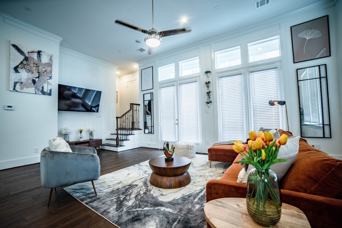 Esta elegante casa adosada de 3 dormitorios y 3,5 baños se encuentra en una ubicación privilegiada con acabados modernos y una planta abierta. Es perfecto para entretener o relajarse. Disfruta de un fácil acceso al centro comercial Galleria Mall, River Oaks District, museos, bares vibrantes y restaurantes de primer nivel. Mantente conectado con Internet de alta velocidad y entretenimiento. Ideal para aquellos que buscan comodidad, comodidad y lujo. ¡Esperamos recibirte en Airbnb con una experiencia elegante en este lugar céntrico!