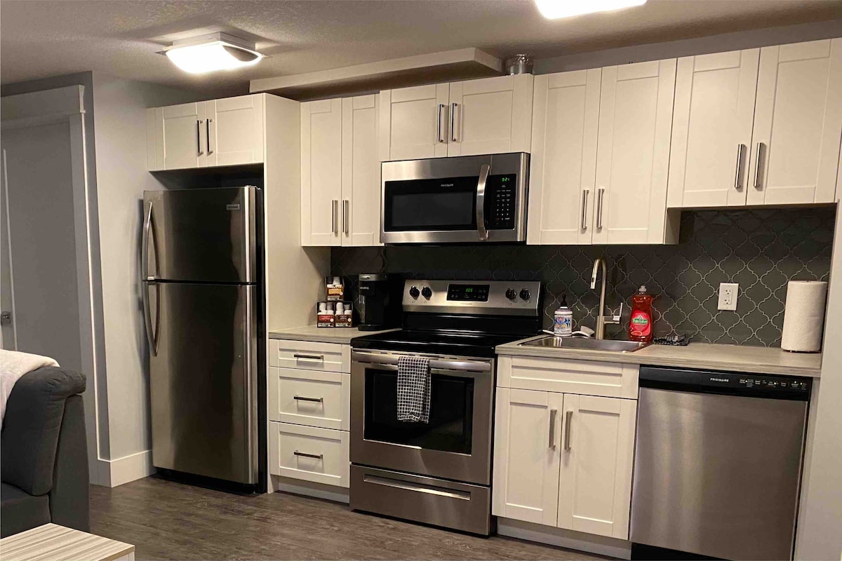 Acogedora suite sótano de 1 dormitorio y 1 baño totalmente amueblada en un bonito vecindario en Parsons Creek. Hay mucho estacionamiento nunca tendrá problemas para encontrar un lugar. • El dormitorio tiene aislamiento insonorizado. • Entrada independiente con entrada sin llave. • Cocina completa con electrodomésticos de acero inoxidable (nevera, estufa, lavavajillas y microondas) • Lavadora y secadora en suite. • Control de calefacción independiente • WIFI de velocidad rápida, Netflix, Prime, Disney (debe tener tu propio inicio de sesión) •Trastero disponible