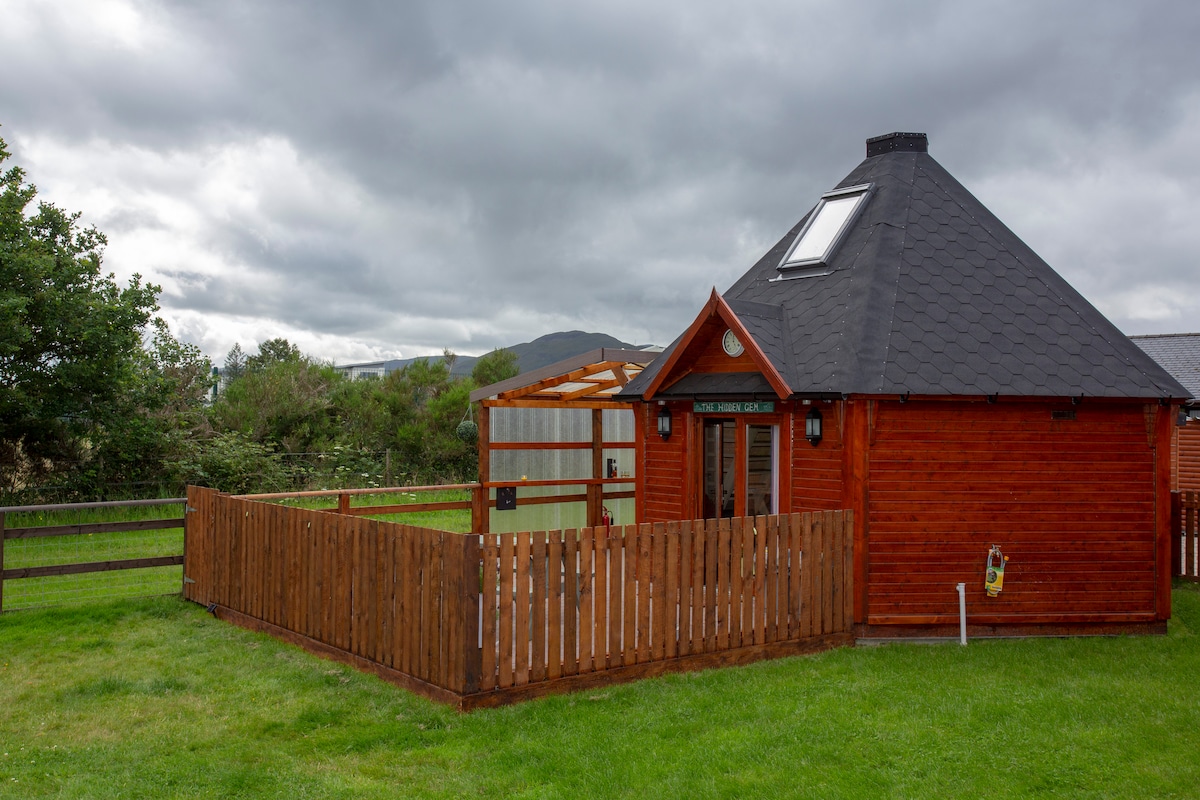 A light and airy timber built chalet with a modern, warm interior offering a real home from home. It sleeps a max of 2 people. Enjoy the view across the bay and a 12 minutes walk to the local, Badachro Inn. The property is located in the grounds of Badachro Distillery, a fully working distillery and is 20m from the main house. Join a tour and let us tell you all about our delicious artisan Spirits. Dogs allowed by prior arrangement. Car charger is available to use by arrangement (charges apply)