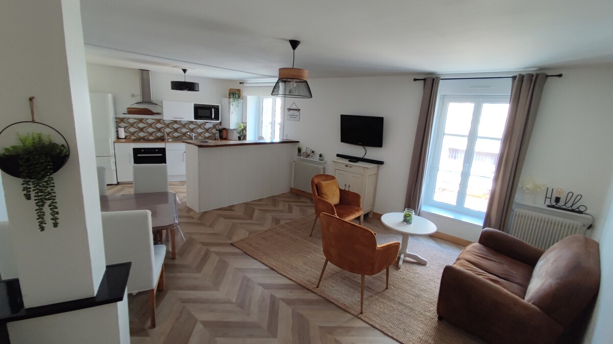 ¡Le damos la bienvenida a este magnífico triplex independiente ubicado en un patio tranquilo en la calle nacional a dos pasos de la oficina de turismo, en el corazón de la ciudad milenaria de Fougères! Ideal para un viaje de negocios o turístico, el triplex totalmente renovado está pensado para que se sienta como en casa:)