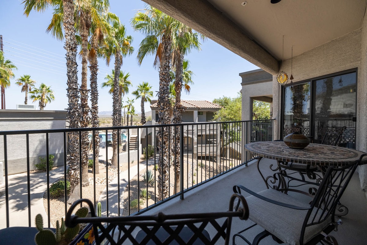 Este apartamento de un dormitorio y un baño en el segundo piso (medio tramo de escaleras) está a menos de 1,6 km de todo: ¡Fashion Square, Old Town Scottsdale y mucho más! Puedes dar un paseo tranquilo y llegar al casco antiguo en menos de 20 minutos. También está a menos de 12 minutos de Tempe Marketplace. El complejo Maya Condo también cuenta con una gran piscina, jacuzzi y un pequeño gimnasio (más antiguo). El patio está configurado en un relajante ambiente bohemio, ¡el lugar perfecto para desconectar después de una larga jornada de exploración!