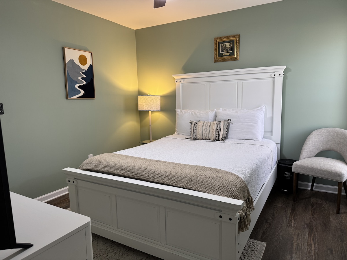 Todo nuevo apartamento tipo casa de campo/estudio. A 5 minutos del anfiteatro CCNB en Heritage Park, a 10 minutos del centro de Simpsonville, a 25 minutos del Bon Secours Wellness Arena en el centro de Greenville. A 20 minutos del aeropuerto GSP. Cerca del Hospital Hillcrest y Bon Secours en Simpsonville. A 25 minutos del Presbyterian College, a 30 minutos de la Universidad Furman. Los huéspedes tienen acceso al patio trasero parcialmente vallado, así como acceso completo a la casa de campo privada. ¡El anfitrión vive en la propiedad! NO hay puerta en el baño.