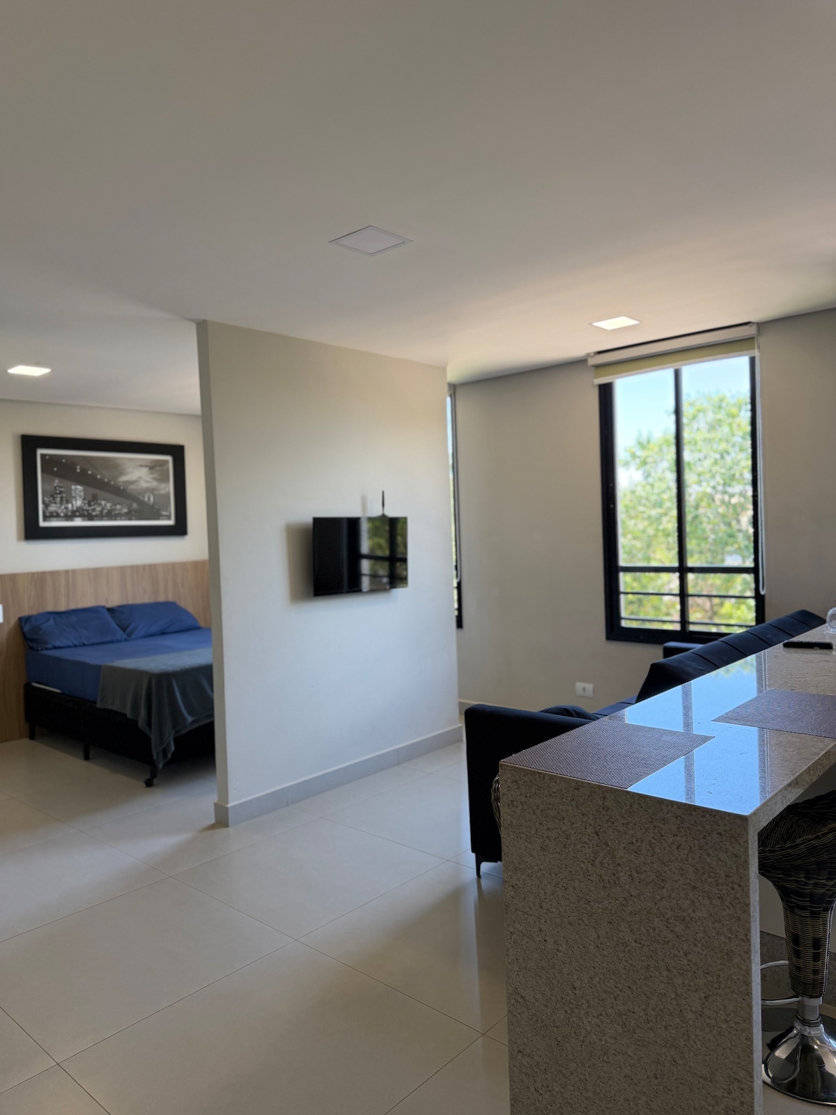 Loft compacto, moderno e novo, ideal para quem busca conforto e ótima localização em Foz do Iguaçu. Totalmente mobiliado, conta com quarto aconchegante, cozinha equipada, banheiro moderno e móveis novos e funcionais, com roupa de cama , banho completo. Ideal para turistas, casais com 1 ou 2 filhos pequenos, ou até 3 adultos confortavelmente, sendo a segunda cama um sofá-cama. Localização estratégica, próxima a atrações turísticas, shopping, mercados e restaurantes. Excelente custo-benefício.