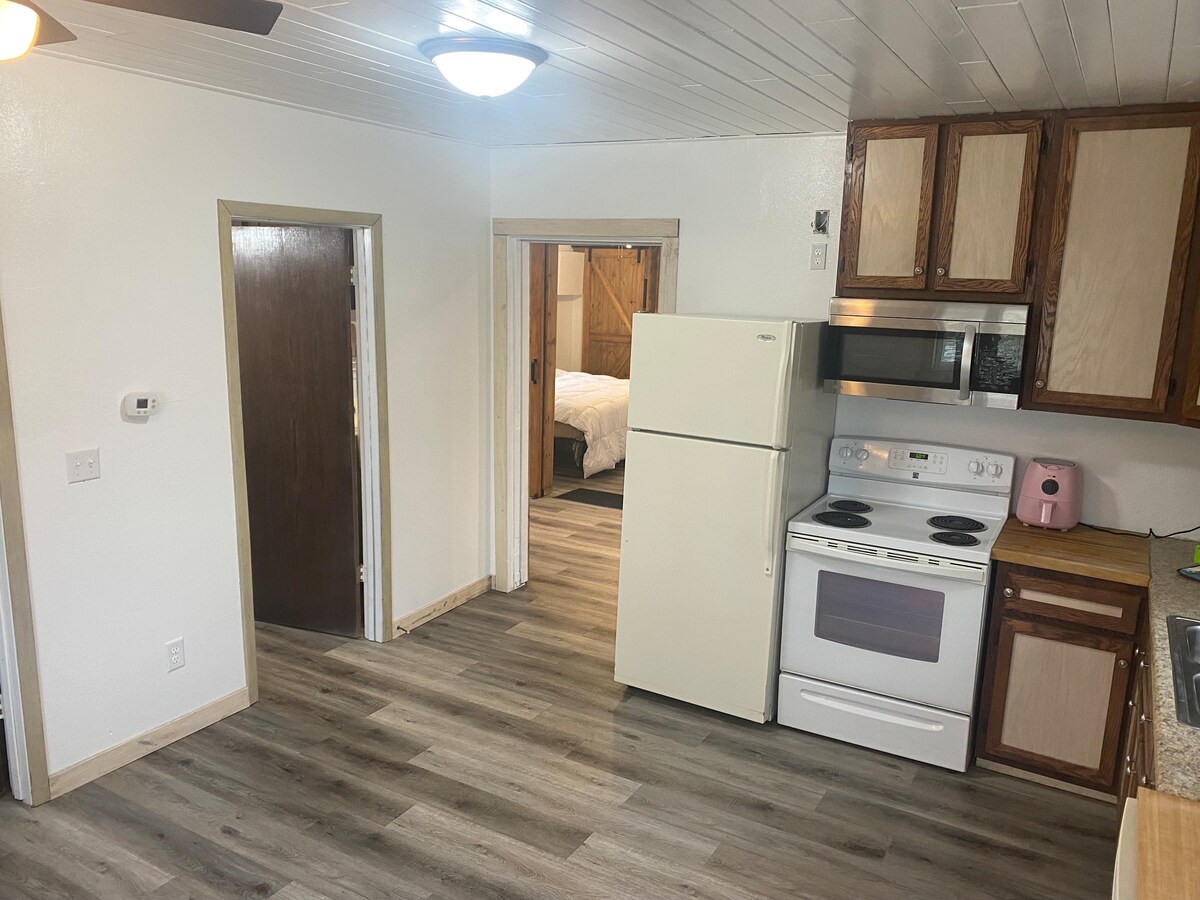 This colorful, hotel room-like apartment is all brand new. Located on the second floor of a historic downtown building, you will be close to restaurants, businesses and anything in town. Our tiny yet fully appointed kitchen has everything to prepare meals or simply warm them up. Custom-built furniture and lots of color make this one of the more unique rentals in the area. If we wouldn’t use it, we don’t include it. Stay for a night or a week. We’re confident you’ll find everything you need.