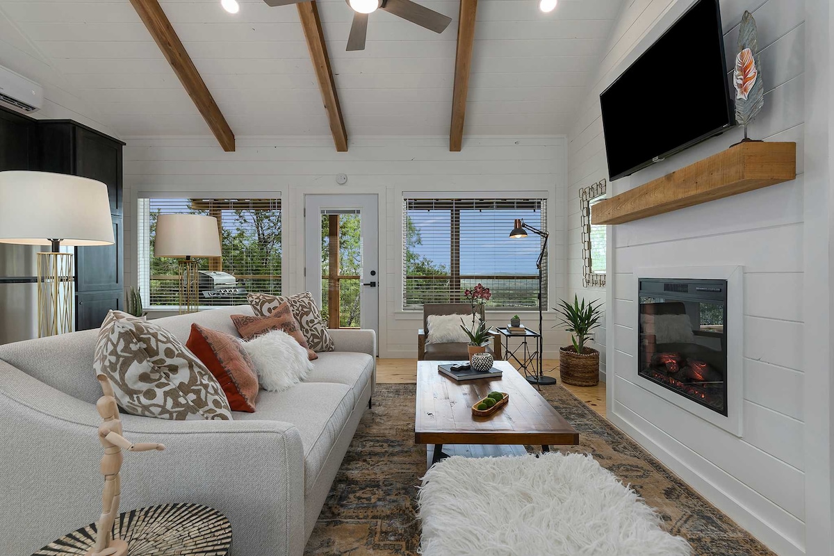 La cabaña Pedernales A-Frame encarna el lujo... Ubicada en una extensa propiedad de 8 acres que bordea el sereno río Pedernales y posicionada en lo alto de una colina tranquila, esta cabaña cuenta con amplias vistas de la pintoresca región de Texas Hill Country. Su interior irradia opulencia con una artesanía excepcional, un diseño aclamado, servicios de primera calidad y una gran cantidad de acabados lujosos que satisfacen incluso los gustos más exigentes. Esperamos tenerte de nuevo entre nosotros...