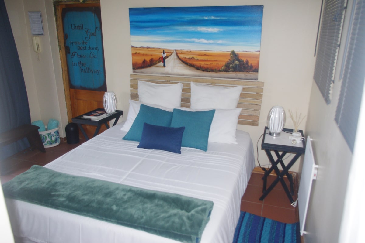 ¡Ven a disfrutar de este cómodo y único apartamento tipo estudio: la habitación superior de la galería de arte Kotzé! Rodéate de hermosas obras de arte originales y muebles hechos a mano. Situado en el centro de los suburbios del norte, cerca de Mediclinic, centros comerciales y varias escuelas. Si la atención al detalle es lo tuyo, ¡reserva tu estancia con nosotros!