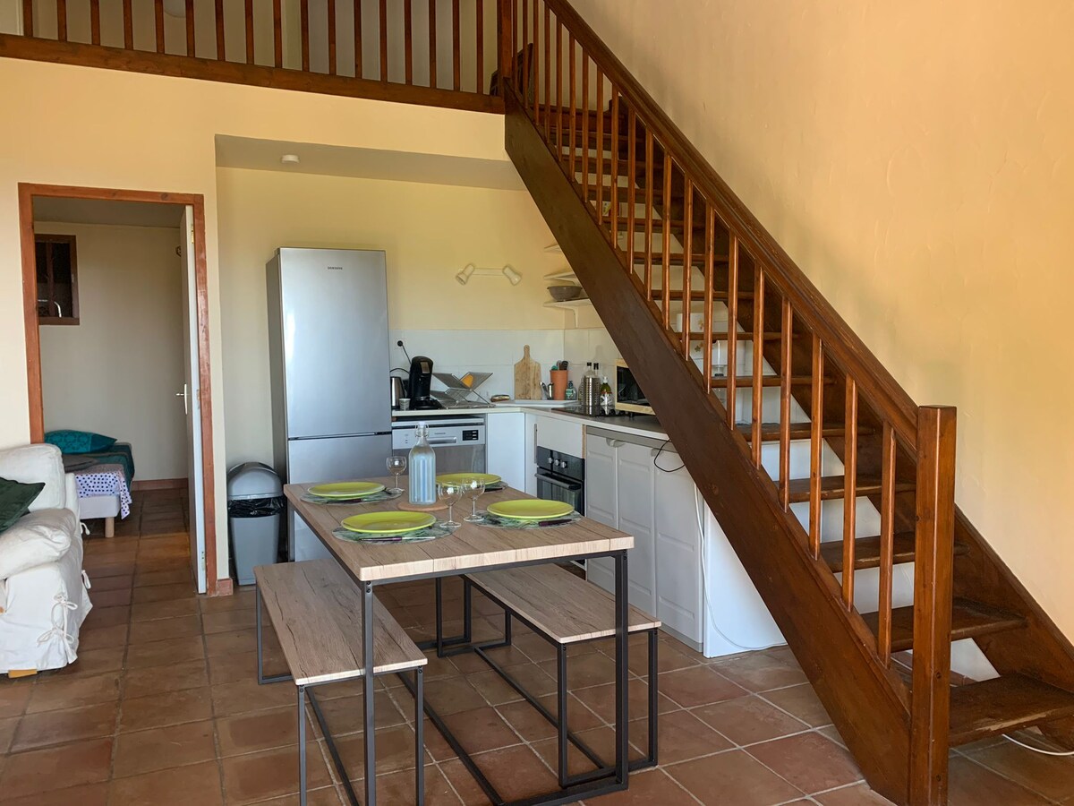 Maisonnette classée meublé de tourisme ⭐️⭐️ avec grand jardin privatif au cœur de la nature, sur les hauteurs de Toulon : un véritable havre de paix à seulement 15 minutes de la mer. Entièrement rénové, le logement a conservé le charme de l’ancien. Il comprend une pièce à vivre avec cuisine équipée, une chambre en mezzanine, une salle d’eau avec douche à l’italienne, ainsi qu’un agréable espace extérieur privatif avec salon de jardin et transats. Entrée indépendante et parking devant la porte.
