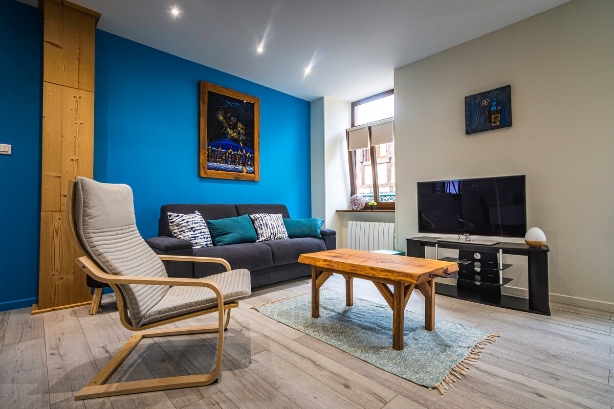Disfrute de un alojamiento con encanto situado idealmente, cerca de las calles peatonales, se puede aparcar fácilmente. Adecuado para perfiles profesionales. -Netflix disponible, TV conectada, WIFI de muy alta velocidad -Cama grande «Queen Size» 160*200 -Barra/espacio de trabajo -Cocina separada y equipada: horno, microondas, nevera, cafetera, hervidor -Lavadora, armario, zapatero -Ropa de cama, toallas, secador de pelo, plancha, -plaza de aparcamiento privada y gratuita