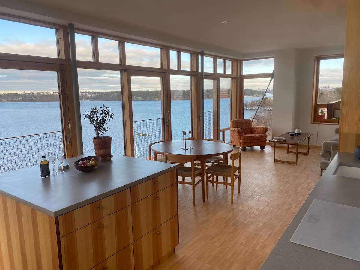 Hermosa villa junto al lago con muelle privado, jacuzzi y una espaciosa terraza de madera que ofrece sol desde la mañana hasta el final de la tarde. Además del jacuzzi aislado, la terraza ofrece una gran barbacoa ideal para cenas al aire libre. La casa está cerca de una playa pública con tobogán acuático y bar/restaurante. La casa se encuentra en una zona verde tranquila cerca del castillo real y la reserva natural, accesible en metro (a 23 minutos de Fridhemsplan) o en coche (a 13 minutos de Kungsholmen). Nota: Política de no celebrar fiestas.