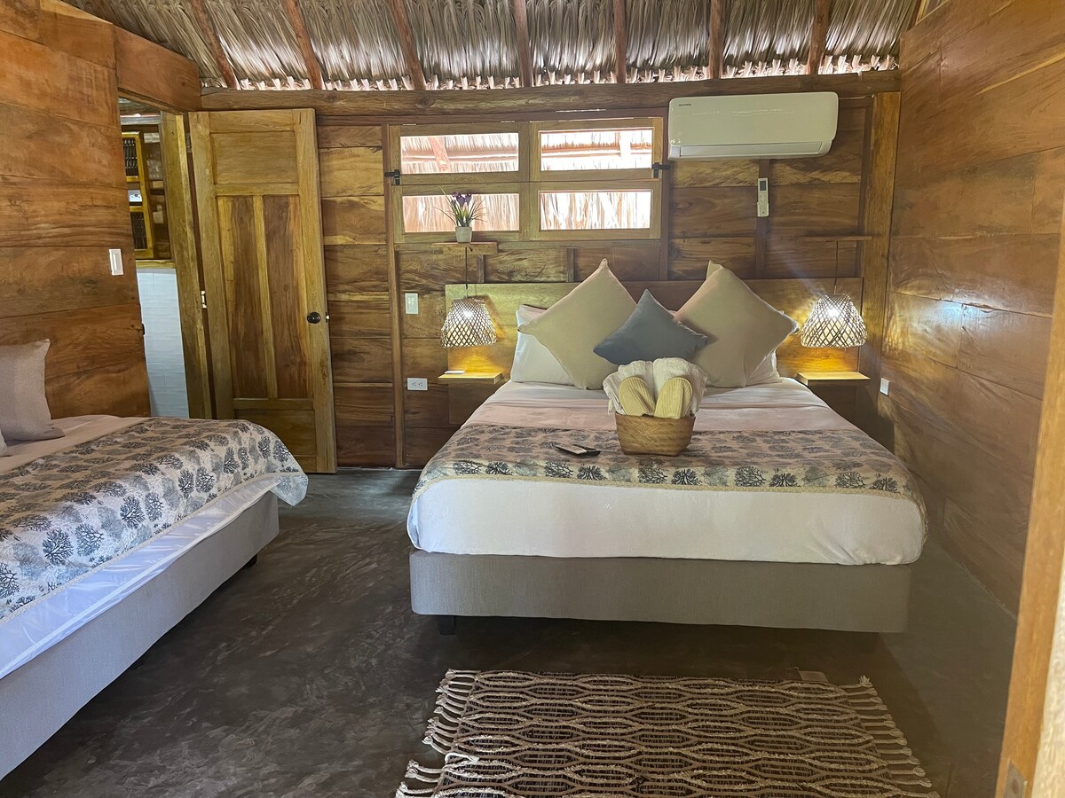 Despierta frente al Caribe colombiano, en una cabaña de madera rodeada de tranquilidad y naturaleza. Disfruta de nuestro Yoga-Bar, un espacio para meditar, leer o compartir una copa al atardecer. La cocina al aire libre está equipada con todo lo necesario para preparar tus comidas. Contamos con dos baños, uno interior y otro bajo el cielo abierto. Es el lugar ideal para parejas o viajeros que buscan reconectarse con la naturaleza y compartir con la comunidad que da vida al Caribe más auténtico.