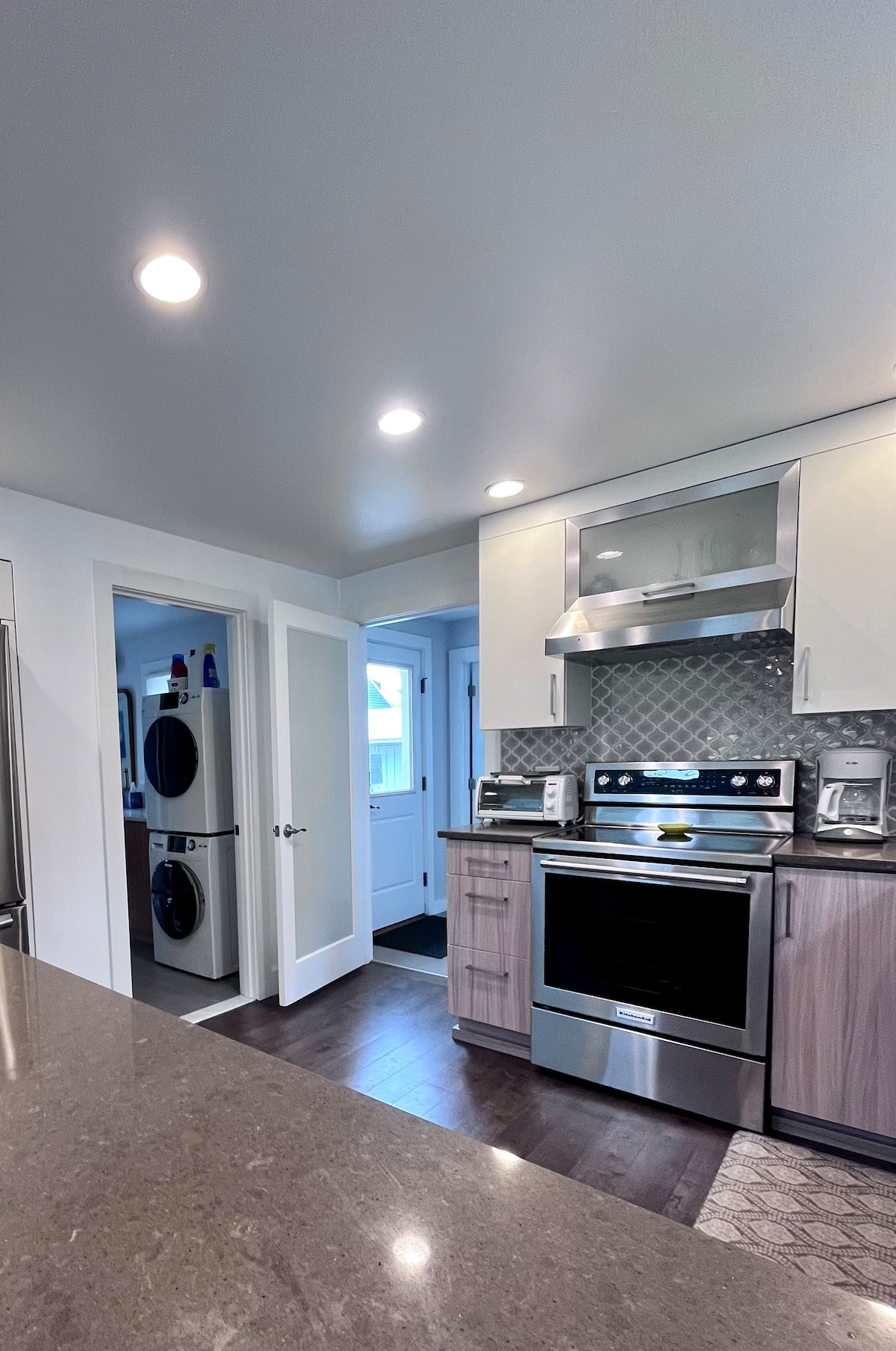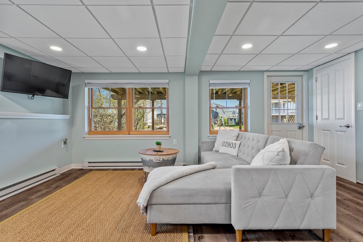 Este lugar tranquilo y céntrico es una casa de campo moderna, soleada y espaciosa de un dormitorio ubicada en el corazón del histórico Wakefield. Estamos a pocos minutos de muchas playas de Rhode Island. Pasea cuesta abajo hasta un encantador parque en el río Saugatucket y luego cruza la encantadora pasarela hacia la ciudad. Aquí encontrarás una gran variedad de restaurantes, cafeterías y heladerías, además de un excelente teatro comunitario, yoga y tiendas interesantes. Relájate dentro de esta casa llena de luz o siéntate en la terraza con vistas a los jardines y la ciudad.