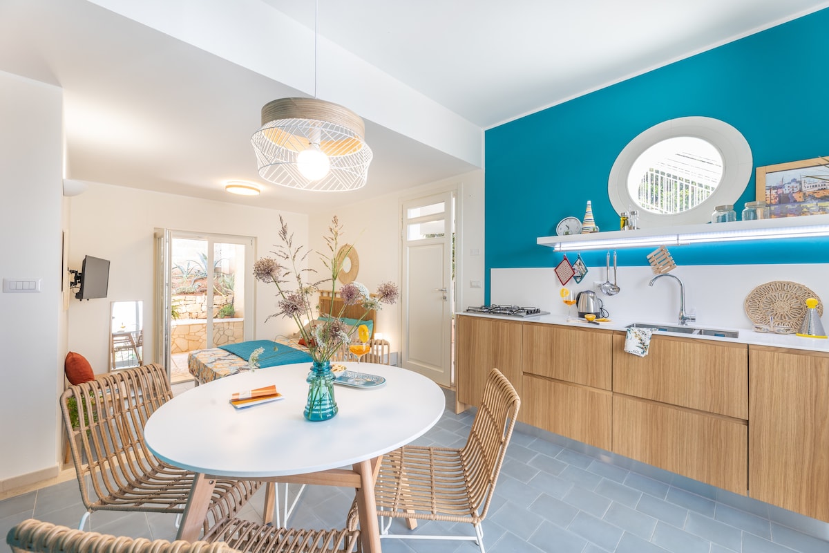 Una vez parte de un palacio noble, Casa di Giò armoniza el esplendor original con un toque ligero y espacioso. Rastros de los arcos de la terraza (ahora el dormitorio), techos abovedados y auténticos azulejos en el piso. Un palacio del siglo XVII, somos los primeros en utilizar la terraza de la azotea, ofreciendo vistas panorámicas del centro histórico de Parabita. A tiro de piedra de la plaza de la ciudad, es fácil sumergirse en lo mejor de Salento aquí.