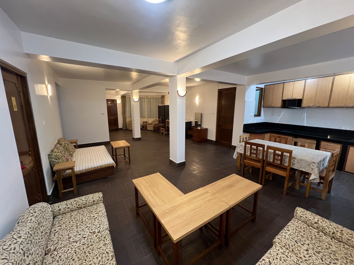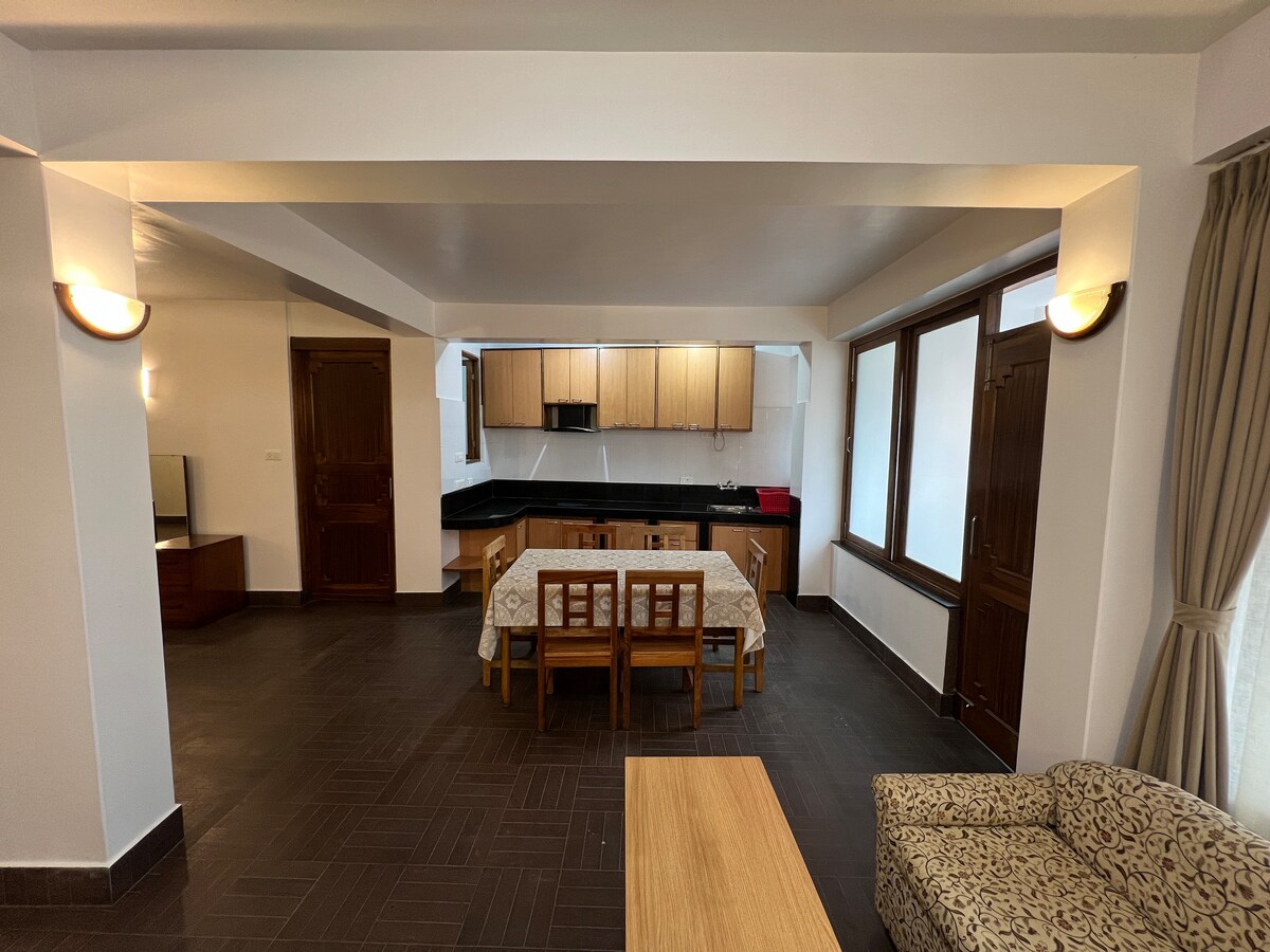 Dhallam ofrece un espacioso apartamento de cocina abierta de tres dormitorios de 2500 pies cuadrados diseñado para una vida cómoda, ideal para una estancia prolongada en Gangtok. Las áreas de estar y comedor bien equipadas junto con una elegante cocina pequeña crean el ambiente de un hogar lejos de casa.