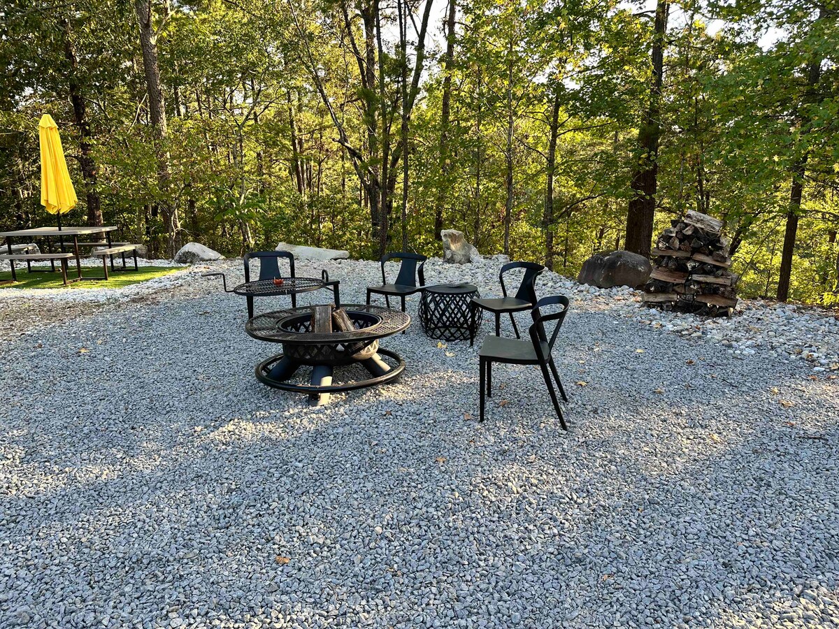 15 minutos al norte de Downtown Hot Springs. Crea algunos recuerdos en este alojamiento privado único y apto para mascotas de 14 acres. La casa de la infancia del presidente Bill Clinton se mudó a la cima de mi montaña. Súper privado, puedes cerrar la puerta en la entrada para estar solo en la naturaleza. Cama tamaño queen, ducha interior y exterior, parrilla de gas, bañera de hidromasaje y fogata. Se permite el uso del pozo de fuego a menos que esté en una banda de quemado. Fregadero de la cocina al aire libre con agua fría. Parrilla con quemador.