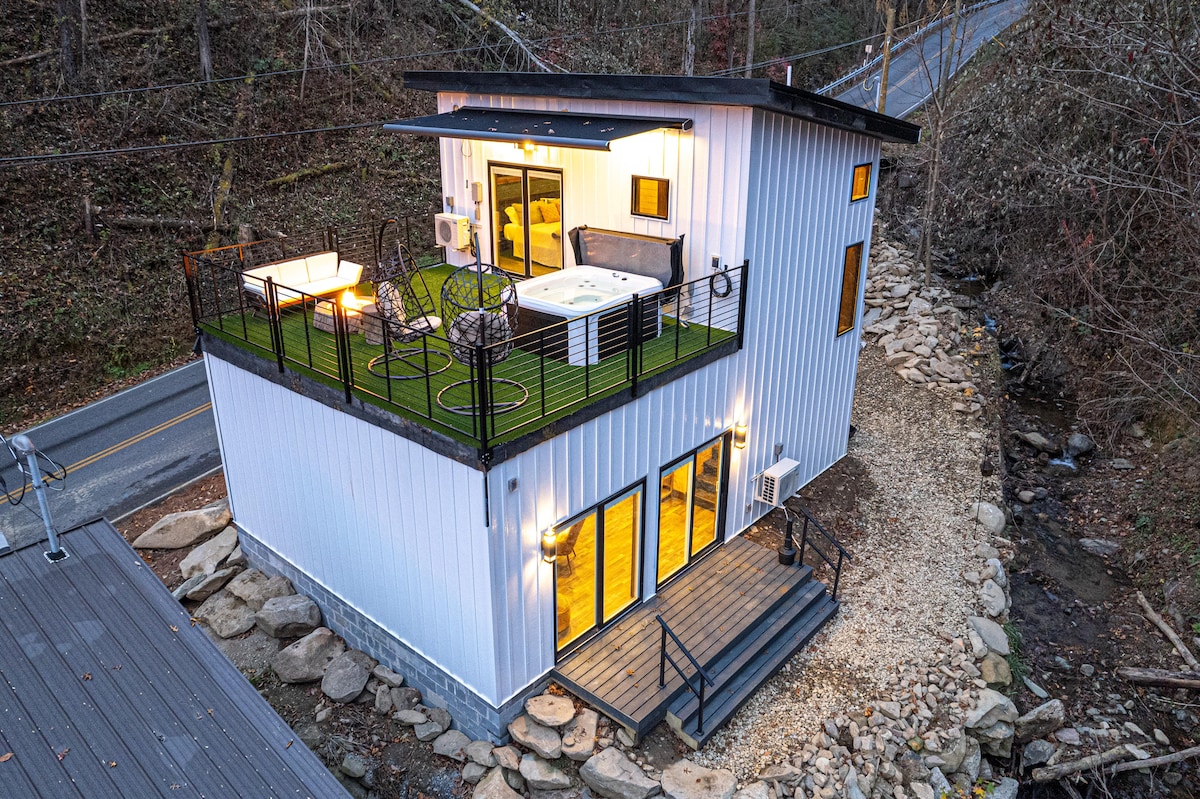 Rooftop Hot Tub | .4 mi to GBURG Strip | Creekside