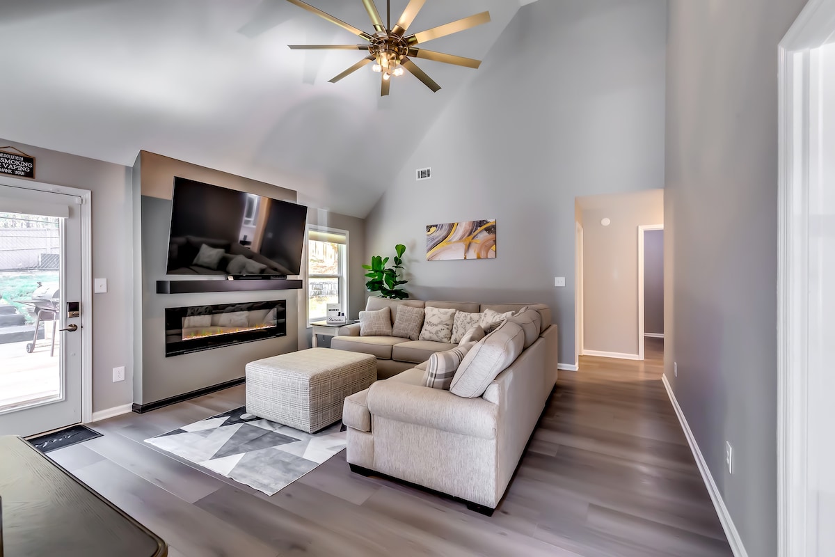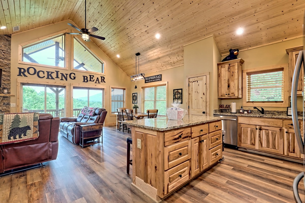 Escápate al lujo en esta impresionante cabaña de montaña Blue Ridge, a solo 5 minutos de DT. Disfruta de vistas de largo alcance, 4 chimeneas de piedra, amplias terrazas, un jacuzzi y un nuevo espacio al aire libre con fogata, putting green y hamaca. Las características incluyen una cocina bien equipada, una barra húmeda, un cargador para vehículos eléctricos, sábanas limpias y un detallado kit de inicio de artículos básicos para que tu estancia sea fácil y sin preocupaciones. Tranquilo pero conveniente, es el refugio perfecto para la relajación, el entretenimiento y la naturaleza.