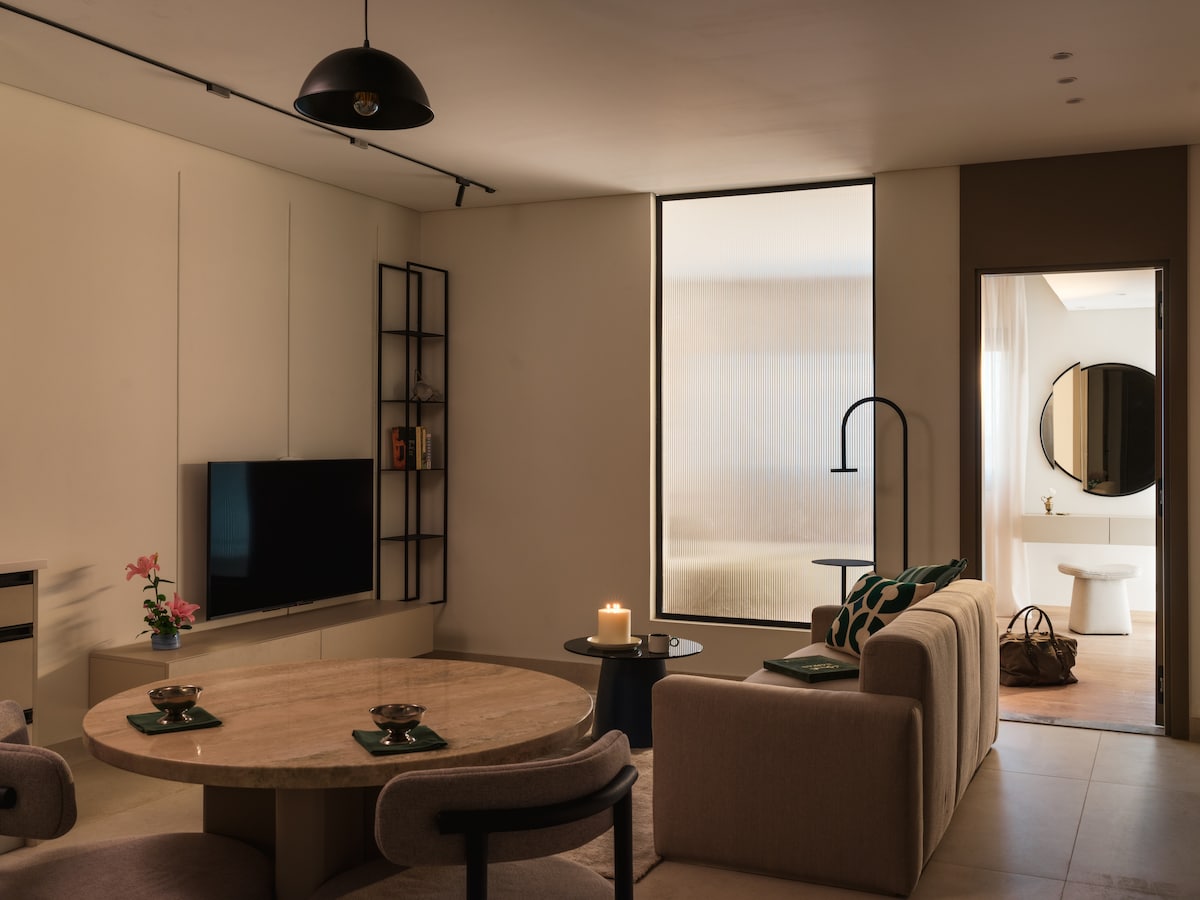 Relájate en nuestro cálido y elegante estudio Al Khayam, perfecto para parejas, viajeros solitarios o estancias largas. Con iluminación suave, asientos acogedores, una cocina totalmente equipada y toques elegantes en todas partes, este tranquilo refugio está a pocos pasos de los mejores cafés y cultura de El Cairo.