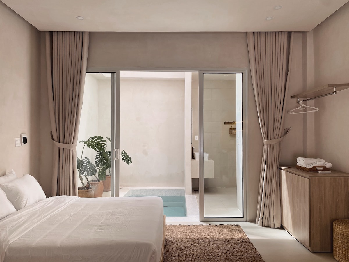 AMBERGRIS está escondido en un callejón tranquilo en el corazón de la ciudad de Tuy Hoa, donde puedes caminar fácilmente para ver el mar y disfrutar de las actividades locales aquí. Hemos creado una experiencia emocionante con una piscina privada en la habitación. Estilo de diseño minimalista, amarillo marrón claro es seleccionado por nosotros para crear una armonía armoniosa para el espacio y sugerir una sensación de paz y tranquilidad.
