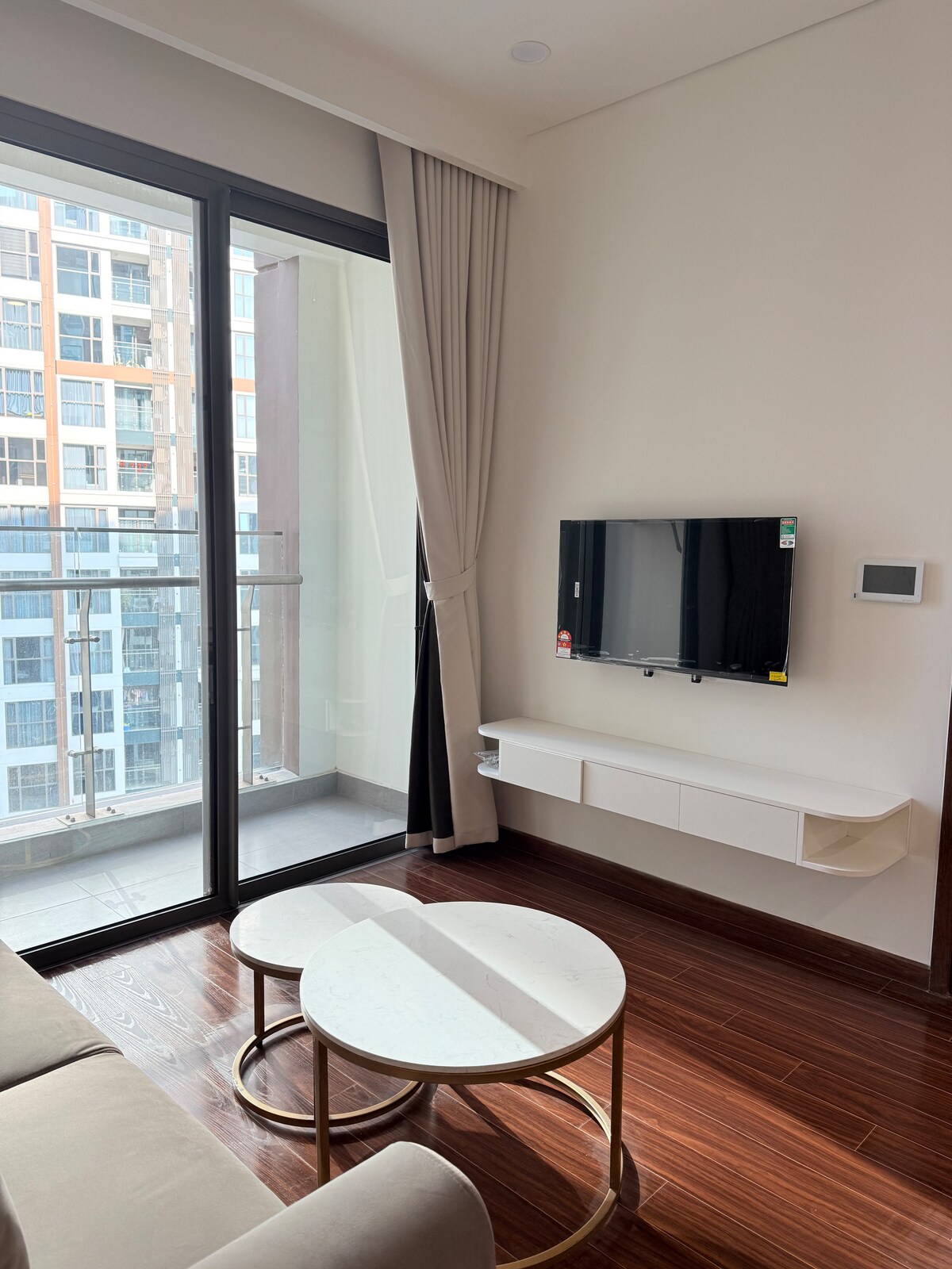 •1 dormitorio separado con una cama grande y suave. • Área “+” con cama supletoria, adecuada para familias pequeñas o grupos de amigos de 3–4 personas. • Sala de estar abierta y totalmente amueblada: TV, sofá, aire acondicionado, wifi de alta velocidad. • Cocina moderna: utensilios de cocina completos. • Inodoro limpio, con lavadora y calentador de agua. • Seguridad y recepción las 24 horas, los 7 días de la semana, seguridad absoluta. • Gimnasio de lujo, piscina interna. •Cerca del mar del lago salado, el lago central, el centro comercial Vincom Mega, la escuela, el hospital nacional