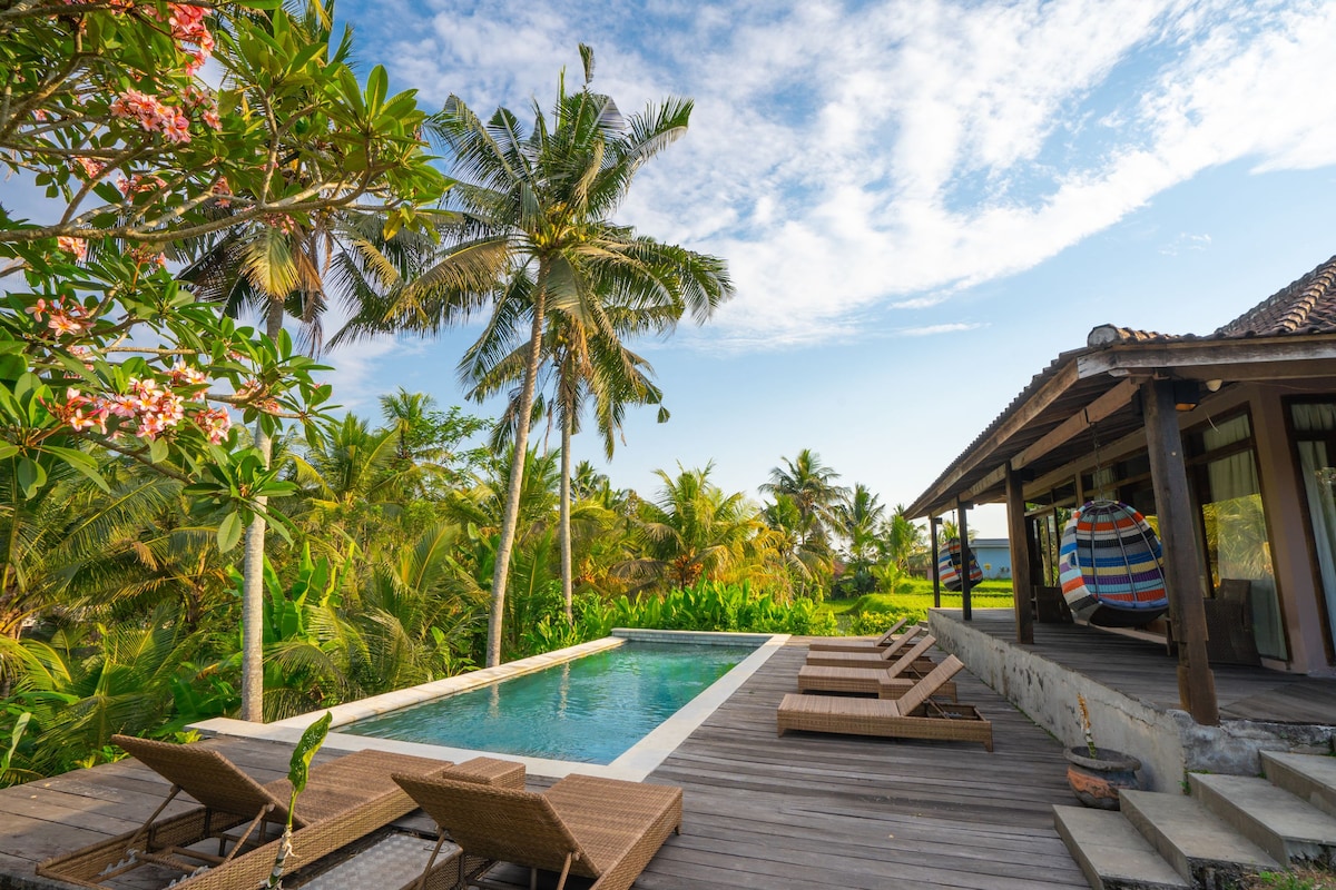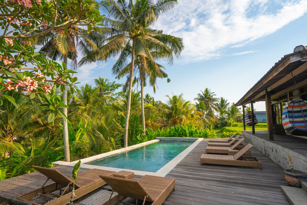 Acogedor refugio de 3 dormitorios con piscina, a 15 minutos de Ubud