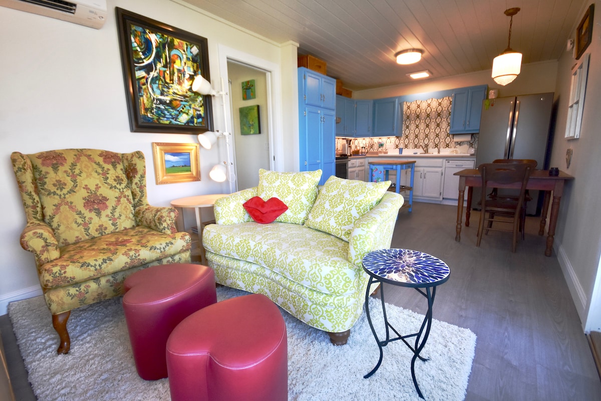 Esta joya de la corona de Bloomingwild, originalmente una verdadera casa de carruajes, ahora es una casa de invitados privada romántica rústica a menos de dos cuadras de Main Street. Amore Dolce cuenta con una bañera profunda para dos personas en piedra caliza con tragaluz y ducha separada. Otras comodidades incluyen una cocina completa, cama tamaño king, un rincón acogedor con cama doble, el loft de arriba tiene una cómoda sala de estar con TV. Encontrarás un jacuzzi privado en tu porche trasero aislado. ¡Haz de Amore Dolce tu paraíso de “dulce amor”! Permiso#13473